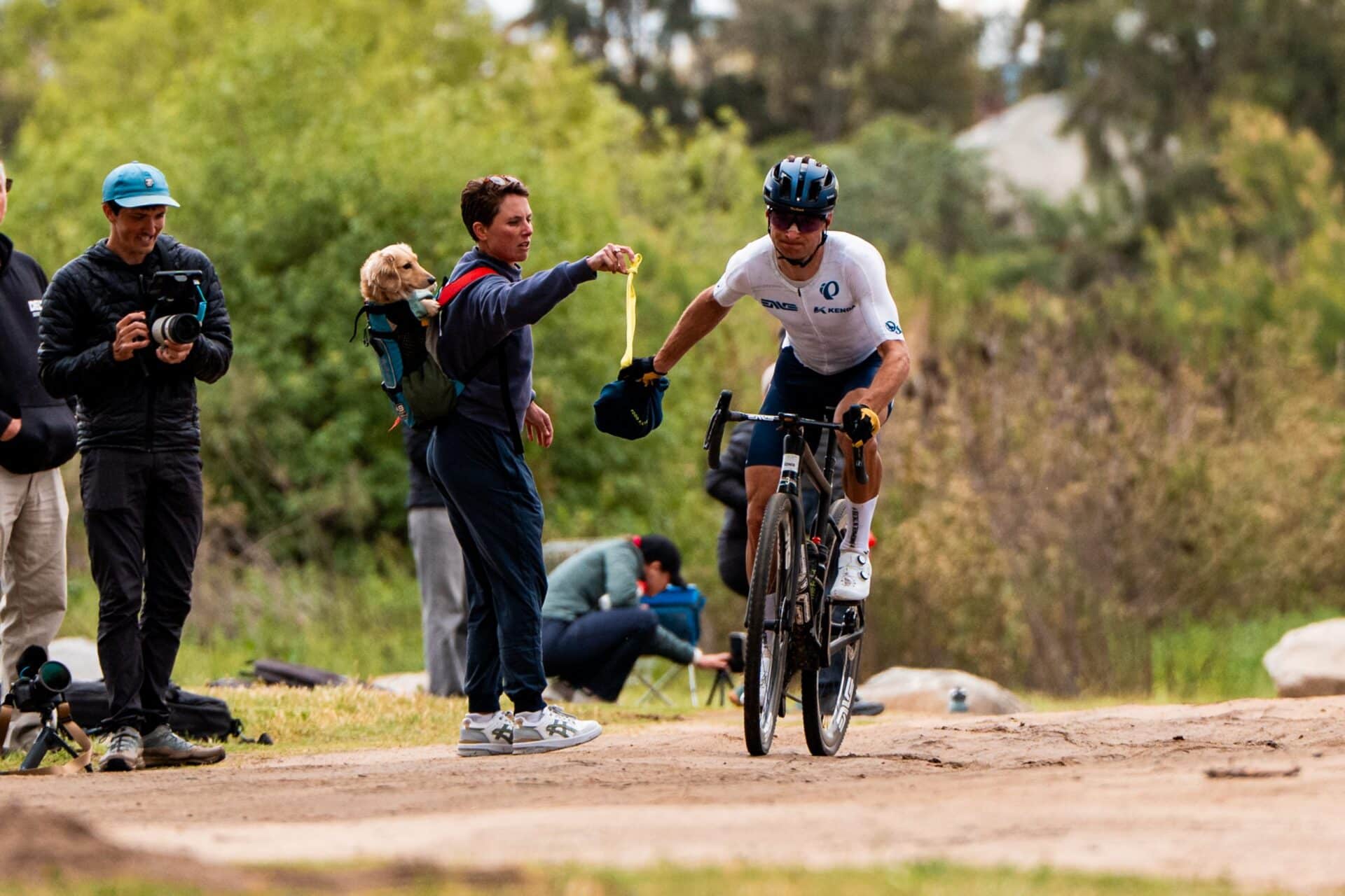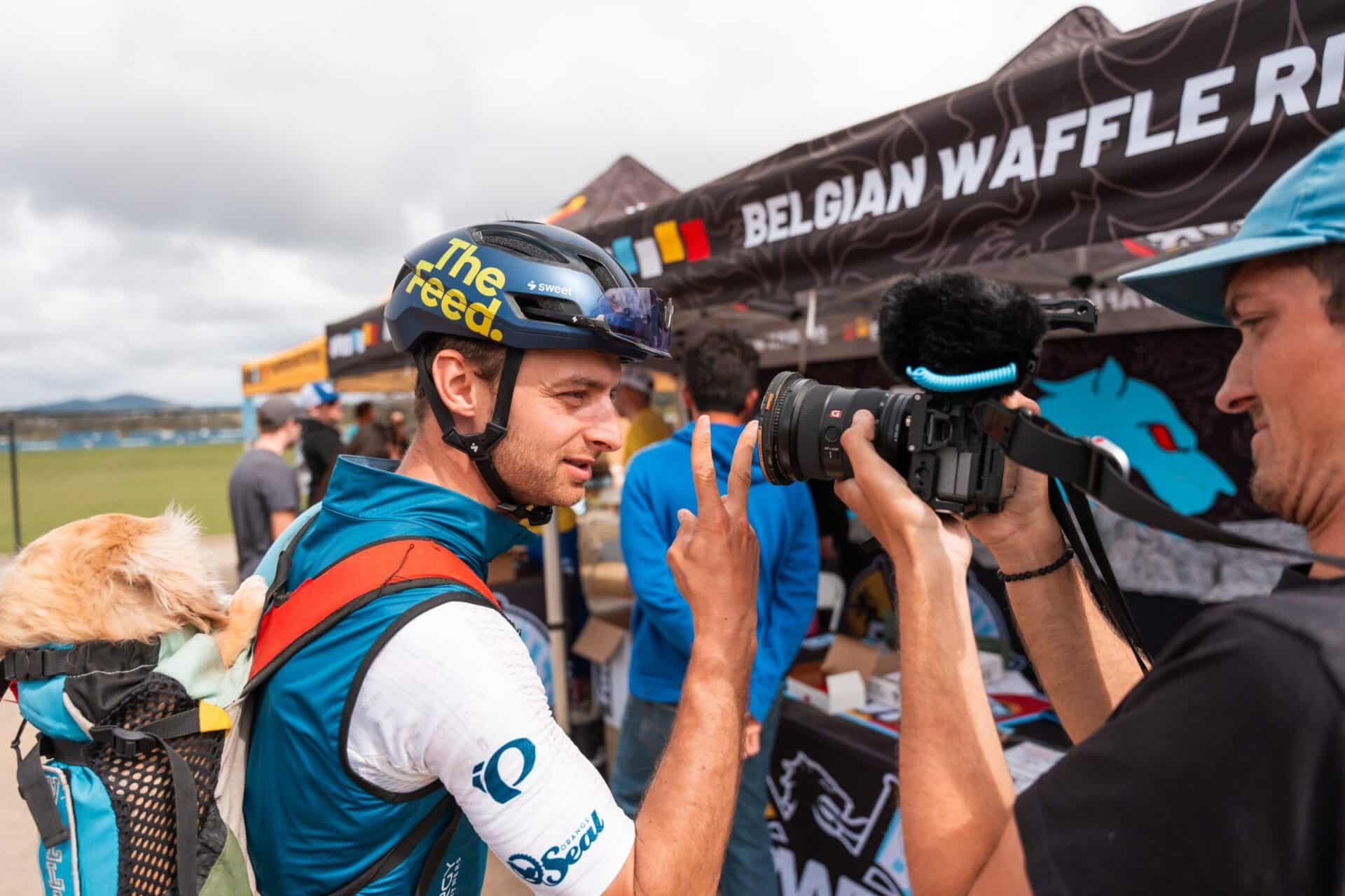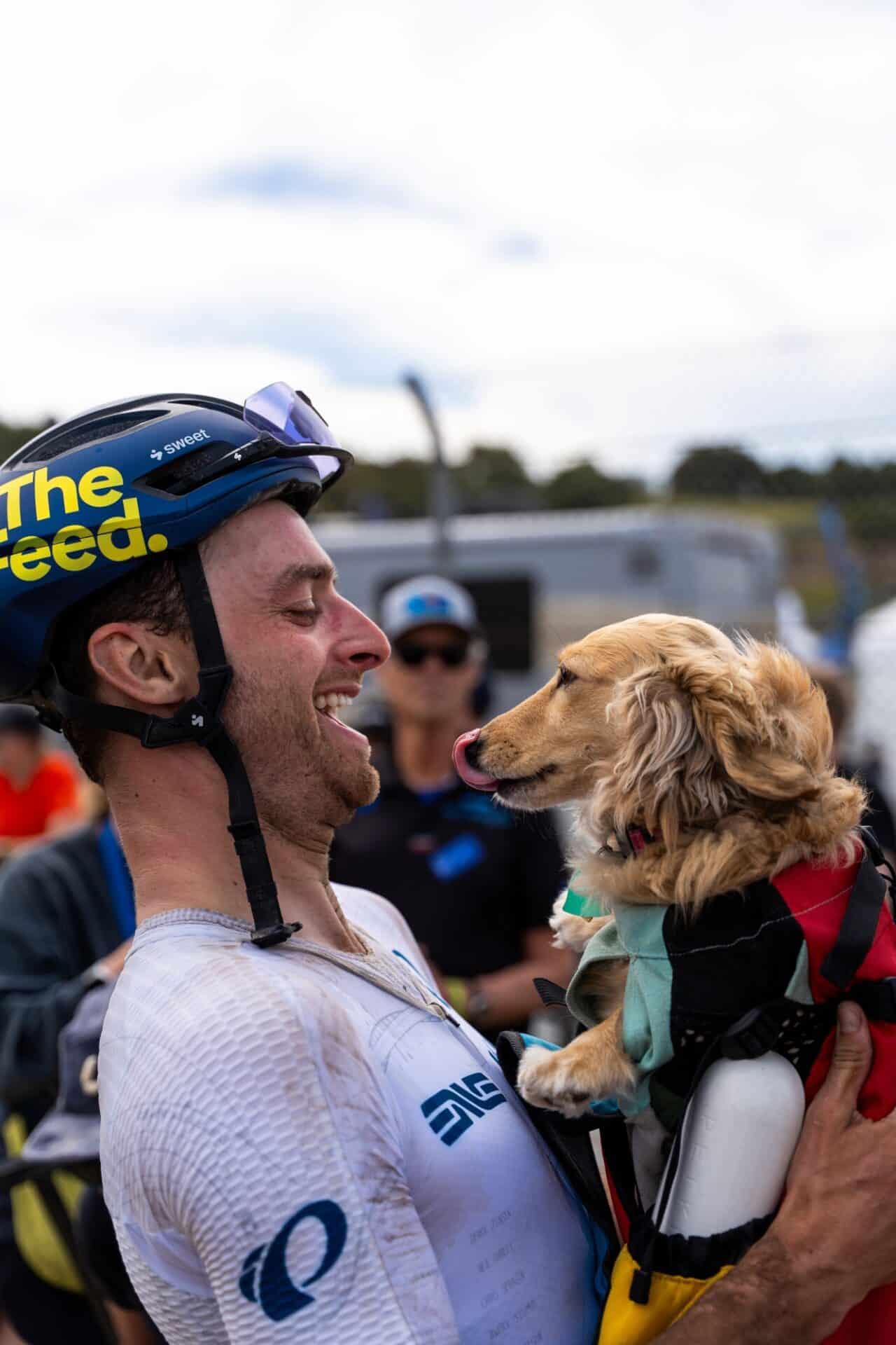 In the ever-evolving world of professional cycling, athletes must now be more than just fast riders. They must be storytellers, personalities, and brand-builders. Few embody this modern archetype as well as Alexey Vermeulen, a Life Time Grand Prix athlete and one of the main contenders for the win at Unbound later this week. He is a world-class off-road cyclist who has seamlessly blended performance with a standout media presence. If you are into gravel racing, you have known him for a long time. If not, we are sure you have seen videos of a cyclist riding with a dog on his back, right? Well, that’s him.