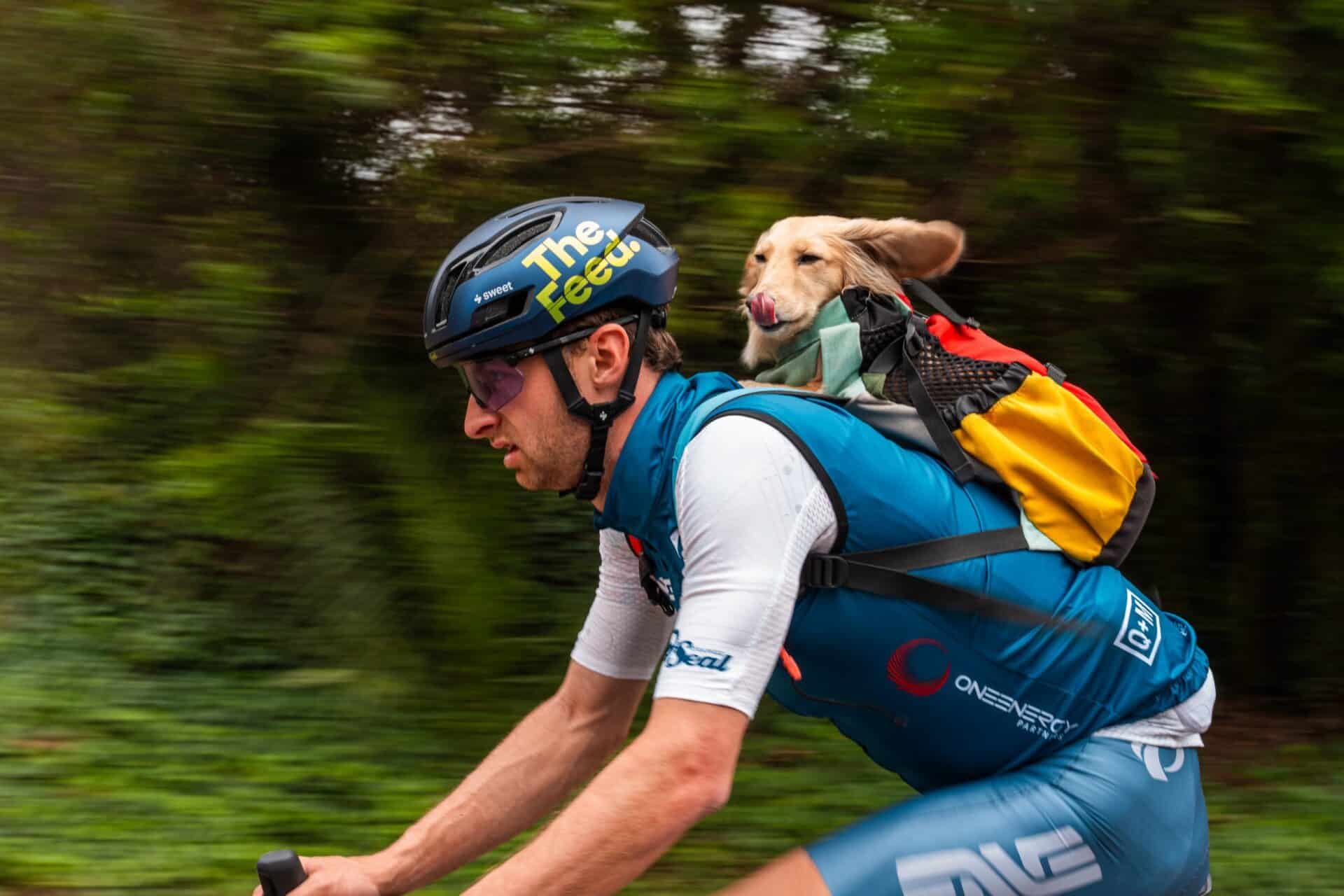 In the ever-evolving world of professional cycling, athletes must now be more than just fast riders. They must be storytellers, personalities, and brand-builders. Few embody this modern archetype as well as Alexey Vermeulen, a Life Time Grand Prix athlete and one of the main contenders for the win at Unbound later this week. He is a world-class off-road cyclist who has seamlessly blended performance with a standout media presence. If you are into gravel racing, you have known him for a long time. If not, we are sure you have seen videos of a cyclist riding with a dog on his back, right? Well, that’s him.