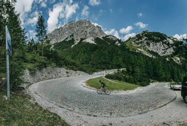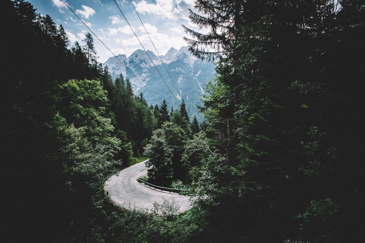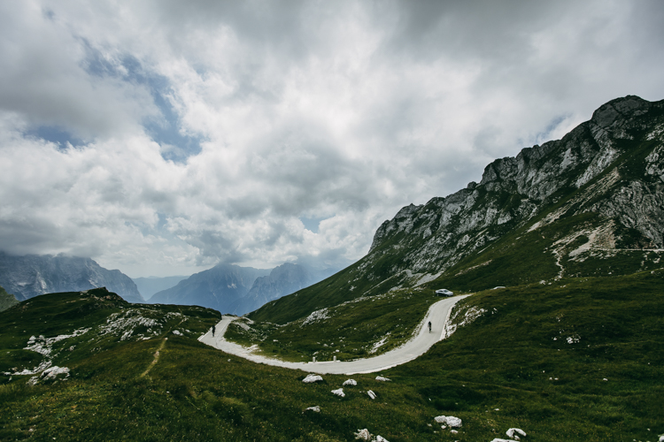 And there it was, in the distance we started to see a vertical mountain, a GIANT of those that make you feel small and worried if you are with your hands on a handlebars. The Mangart received us.