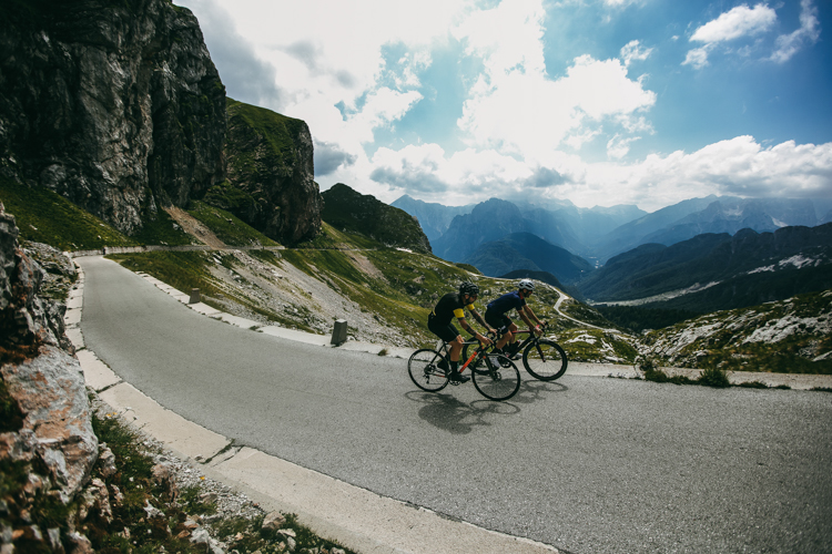 The first contact with the Julian Alps from Bled, while the first early bathers were refreshed in the glacier lake overlooking the medieval castle, we lined the first climbs. The route was planned relatively short and with a constant gradient, but not free of hard ascents, like the one that borders the mount Jeličnik nicknamed like the “Slovenian Mortirolo”. Stops in places with a lot of charm like Bohinjsko Lake and back, with intense descents and several ups & downs that, added to the perfect temperature that accompanied us the first day, made that on arrival in Bled, many could not resist the temptation of jumping head to the lake. It has been enough to be the first day of the route. GREAT.
