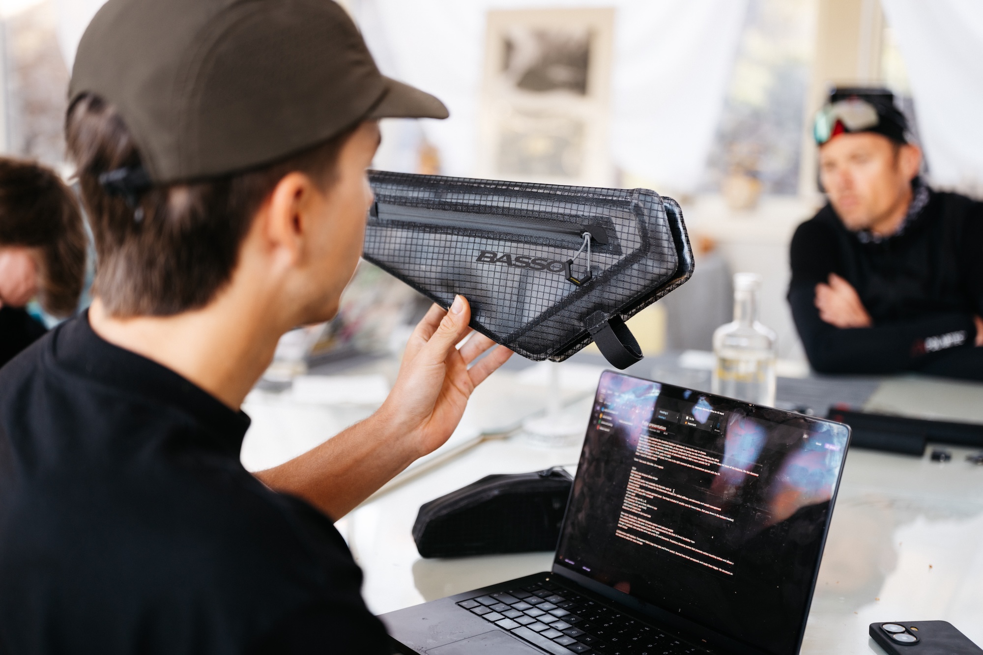 That philosophy extends to collaborations. The partnership with Apidura brings transparent, bolt-on frame and top-tube bags that prioritize function over structure, maximizing usable volume while keeping the bike visually clean. The starting point was Apidura’s aero packs, and together came up with something slightly bigger. There is no structure on the laterals to allow for more storage.