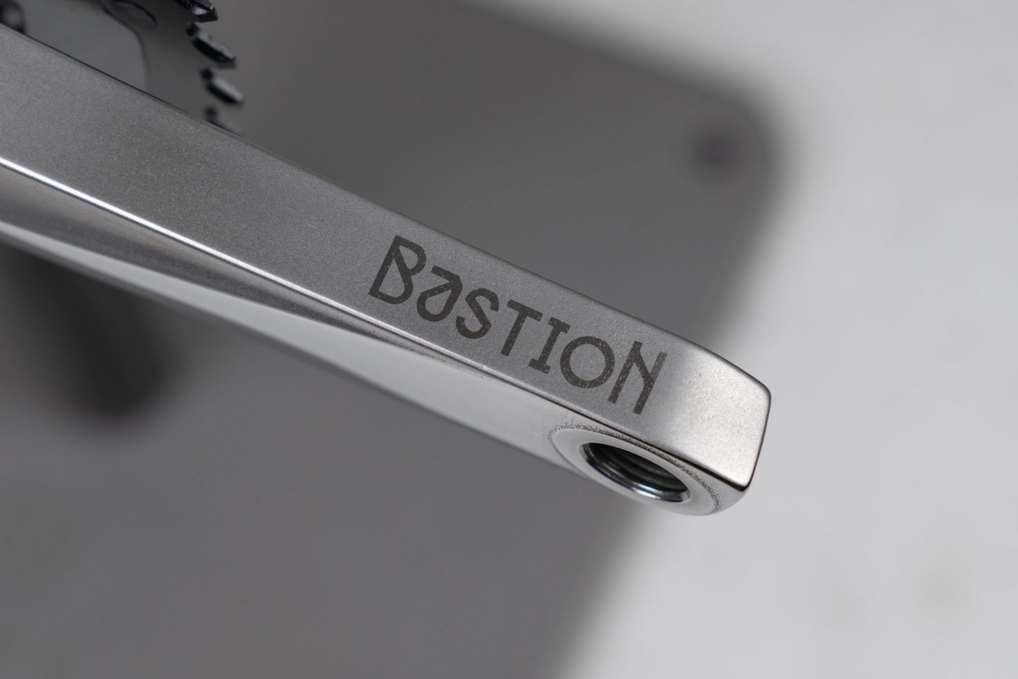 The asymmetric design of the crank gives the feeling of movement even when stationary. The character lines along the length of the arm are reminiscent of those found in the lugs of their frames helping tie the crank back into the distinct Bastion aesthetic.