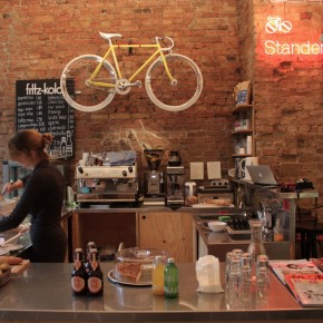 The next day, having slept a hole lot, we went to get our fixed gear bikes to a store that we had located from home where we could get some rental bikes. When we got to the store HELLO WORLD BERLIN Sdoe attended us, he asked us to wait about ten minutes to finish up with the other clients who were before us, and sense the service is extremely personalized and has a very particular schedule (from 10:00 to 13:00 h.) so one of the conditions was to book a day in advance. We let those ten minutes in a coffee shop next door to the rental shop where they make some great coffee, when Sdoen came for us took us to the store and showed us lots of vintage bikes super maintained (many of them fixed gear) that would make more that one person go crazy for. He gave us some Kryptonite, Bern helmets, lights, mini air pump, tubes and all the tools necessary in case we had an accident. We marked on a map the major points of the city to visit by bike and lots of tips were we could go have fun. It is certainly the best shop Rent Bike I know and the staff treated us excellently good. If you go to Berlin, and you don’t have how to move throughout the city and you want to feel at home this is your place.