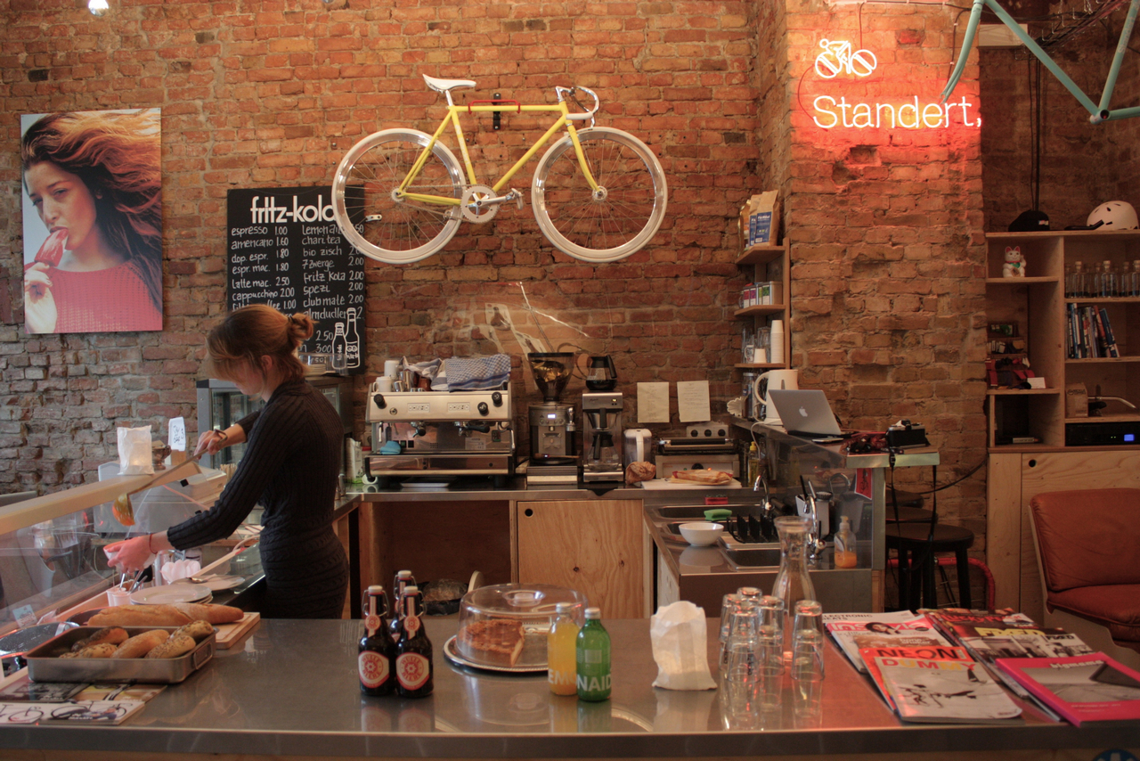 The next day, having slept a hole lot, we went to get our fixed gear bikes to a store that we had located from home where we could get some rental bikes. When we got to the store HELLO WORLD BERLIN Sdoe attended us, he asked us to wait about ten minutes to finish up with the other clients who were before us, and sense the service is extremely personalized and has a very particular schedule (from 10:00 to 13:00 h.) so one of the conditions was to book a day in advance. We let those ten minutes in a coffee shop next door to the rental shop where they make some great coffee, when Sdoen came for us took us to the store and showed us lots of vintage bikes super maintained (many of them fixed gear) that would make more that one person go crazy for. He gave us some Kryptonite, Bern helmets, lights, mini air pump, tubes and all the tools necessary in case we had an accident. We marked on a map the major points of the city to visit by bike and lots of tips were we could go have fun. It is certainly the best shop Rent Bike I know and the staff treated us excellently good. If you go to Berlin, and you don’t have how to move throughout the city and you want to feel at home this is your place.