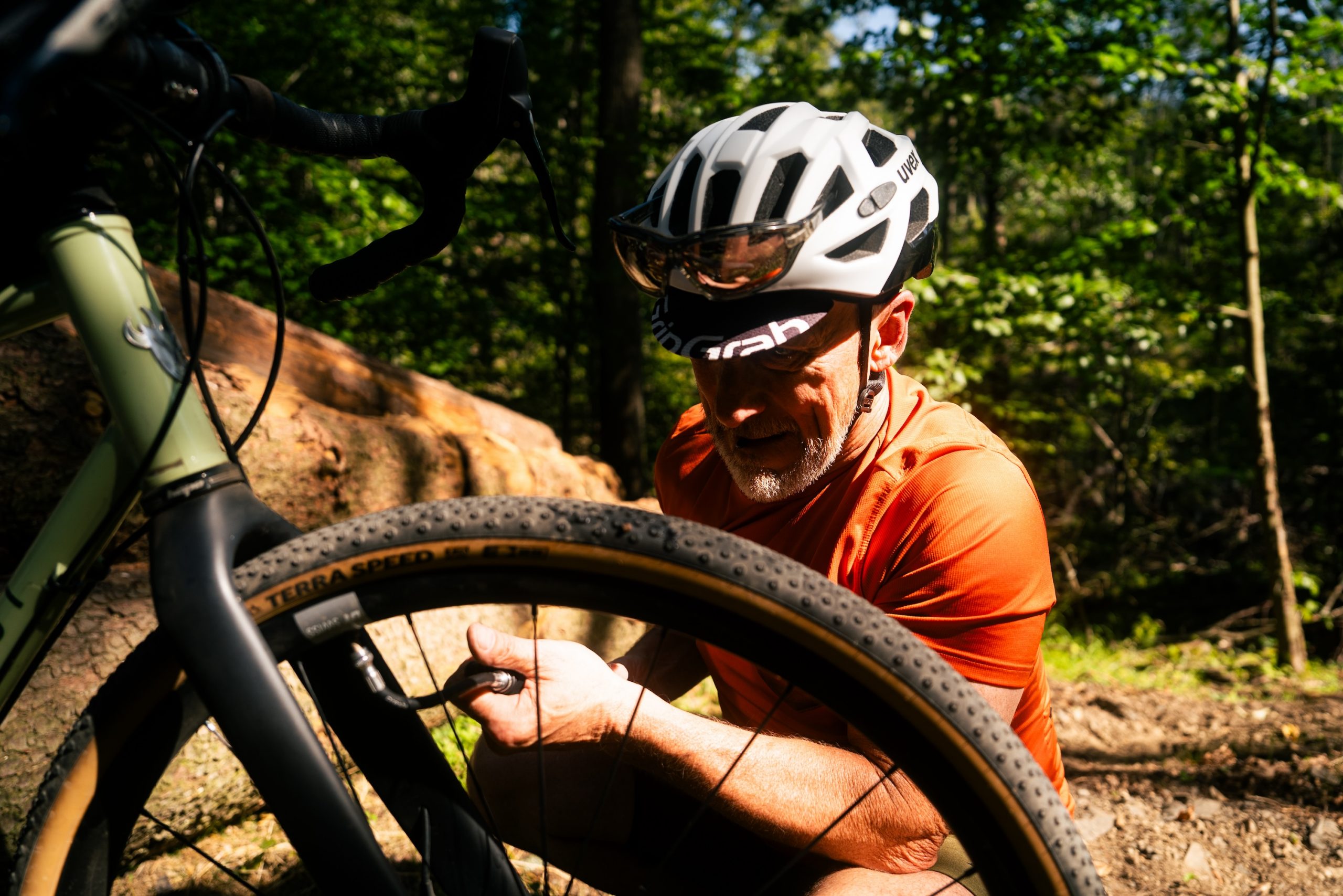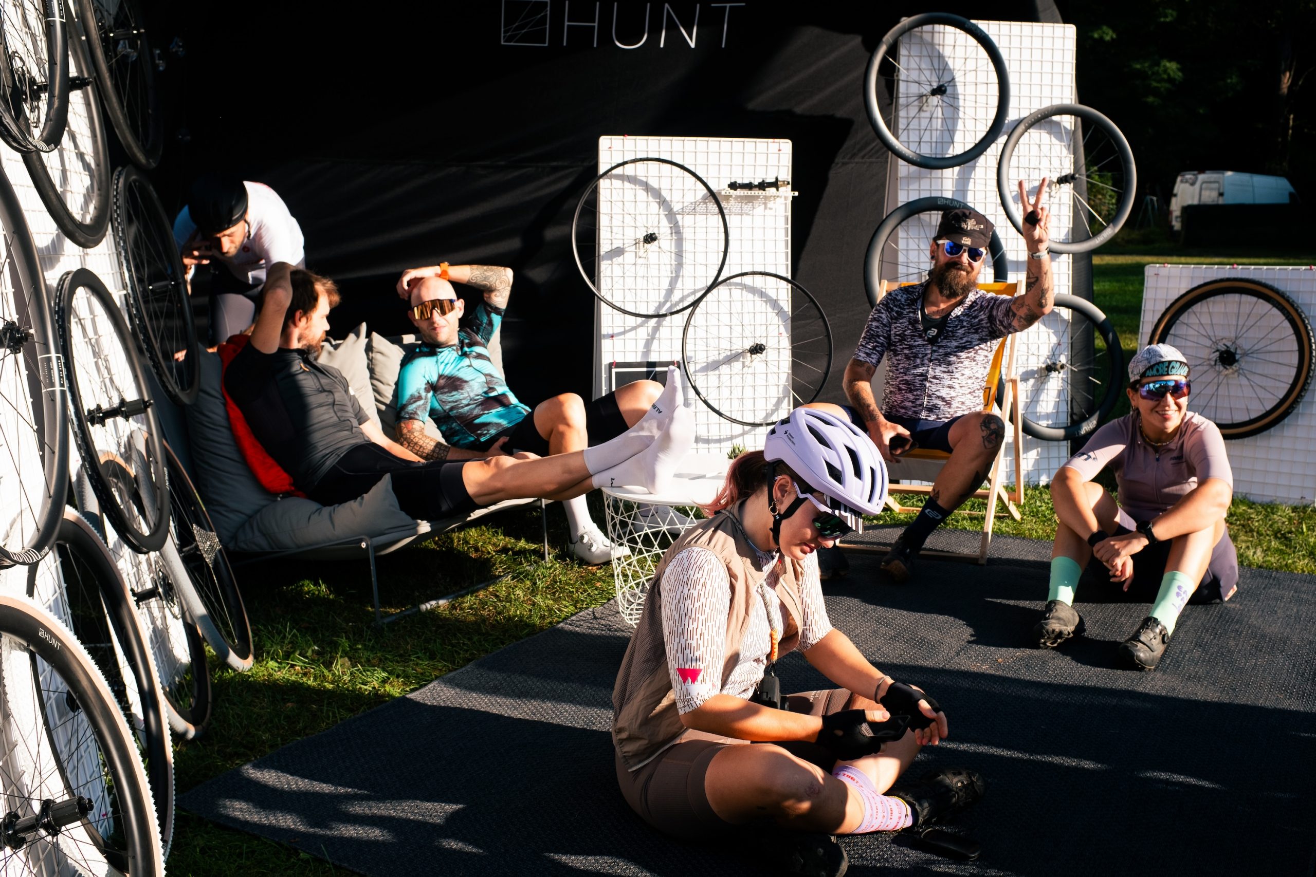 Along the 73 km route, there were several stops to complete small games and challenges organized by the sponsors, with prizes for the luckiest participants. Spinning a hula hoop, aka the HUNT rim turned out as the most challenging one eventually! We had lunch at the Posedla site in the nearby town, allowing us for a quick visit to the custom saddle builders’ factory. The route was highly enjoyable, primarily following gravel roads, and where we did use the road, we completely avoided traffic. The pace was moderate, with frequent regrouping so that no one was left to ride alone.
