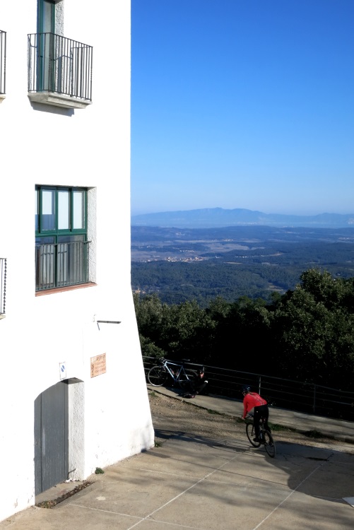 Day two brought us west out of Girona, we road past Amer and then took a smaller road that lead us to the damm that looks like it would be a perfect place to record some action and explosion scenes for a typical Bond movie – you know the typical quiet and beautiful scenic view that just begs to be blown up and Daniel Craig running slightly beaten up and dusty to avoid to get shot. Oh sorry, back to our trip again. After leaving the damm we stumbled upon a surprise part of the ride, a steep climb that I hadn´t warned them about (mostly because this part of the ride was new to me to) it never seemed to end but as after most climbs comes a decent and this one was one of the best descents I have done around here. We had a bit of a food stop and headed up the 16k climb to Sant Hilari and then once again got to enjoy a sweet decent and then some flat roads back to G-town in the twilight.