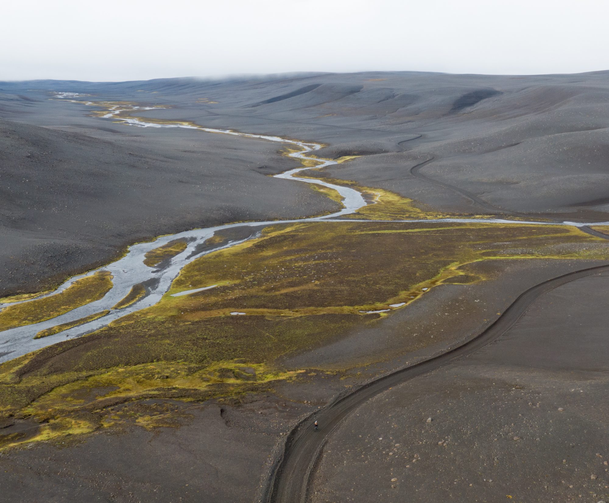 On his way to the south of the island, he covered 115 miles of pavement, 130 miles of extremely rough, rocky, demanding tracks, and about 10 miles of nice smooth dirt road. He was exposed to the weather conditions during the entire time, and had to face the furious gusts of wind particular of Iceland’s highlands. The headwind died and temperature increased for the final 100 miles, and his spirits were lifted, finishing the last section strong and at a good speed.
