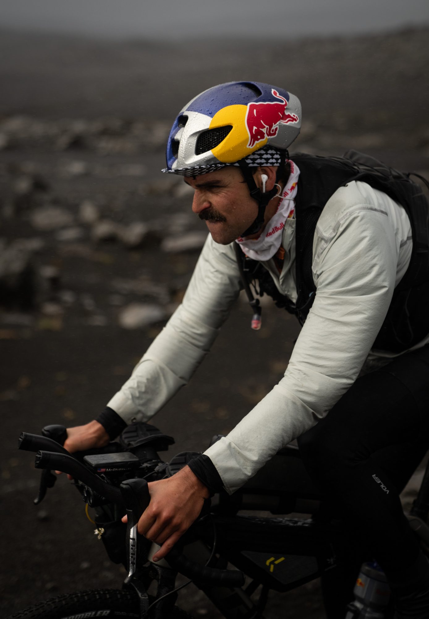 With no feed points along the route, McElveen carried more than 7.000 calories to fuel the journey. Among the mix of real food, ride food and liquid calories, he ate a lot of Icelandic candies, cinnamon rolls, all types of gels, and highly caloric hydration powder that he added to the bottles he refilled from a glacial stream.