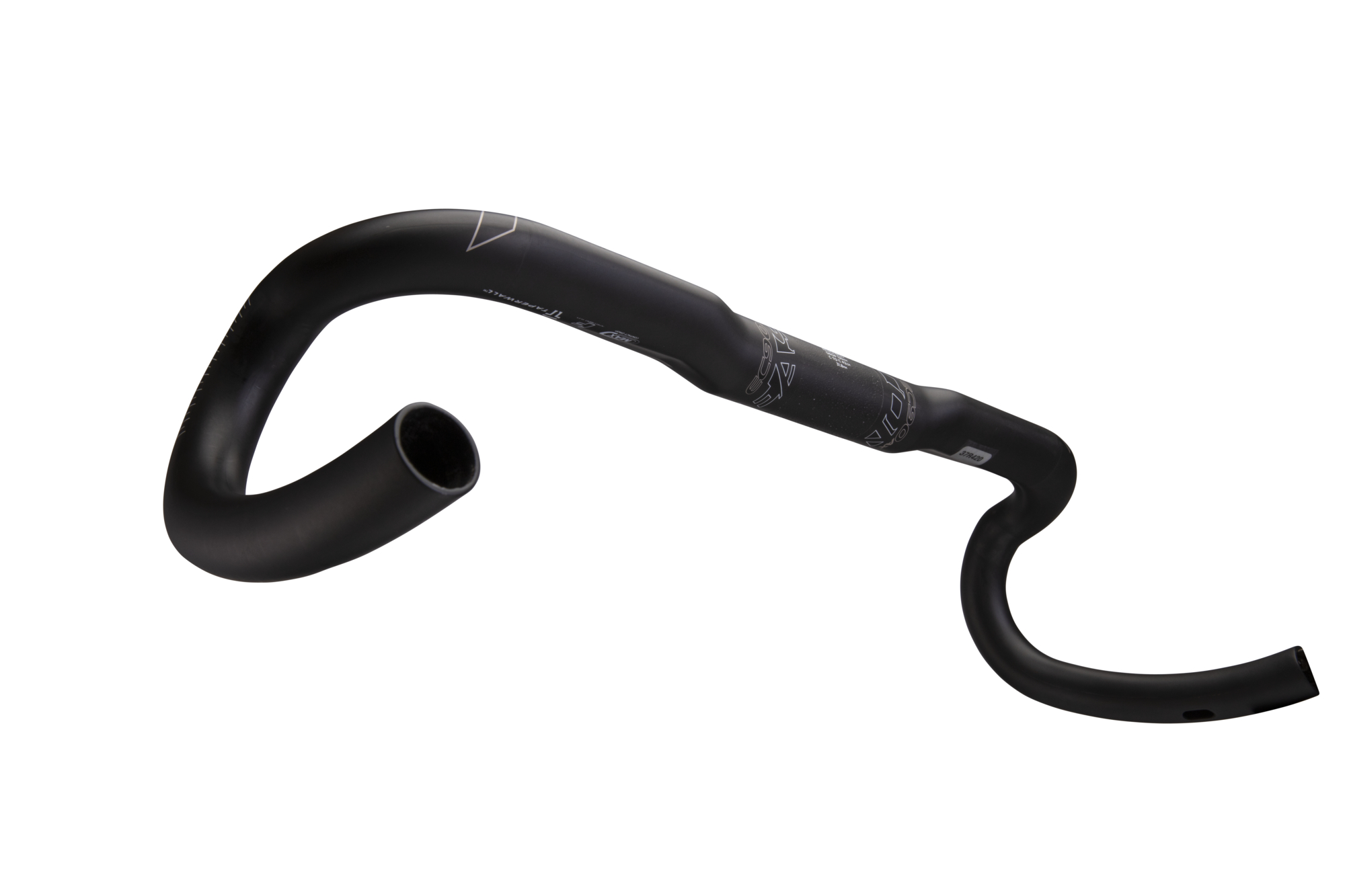 The EC90-AX represents the top-end handlebar of the Easton gravel series, with a specially cut geometry, an excellent finish, and high-quality carbon. The handlebar comes in four different sizes, from 40 to 46 cm (measured center-center at the hoods), and each one has a different design. In general, the top tube has an ergonomic shape that makes it rather wide and flat. However, as you move down to the drops, it becomes circular and opens up to the sides with a 16-degree flare. This flare adds extra comfort as you go through technical descents, it allows carrying larger handlebar bags, and it does not seem disproportionate.