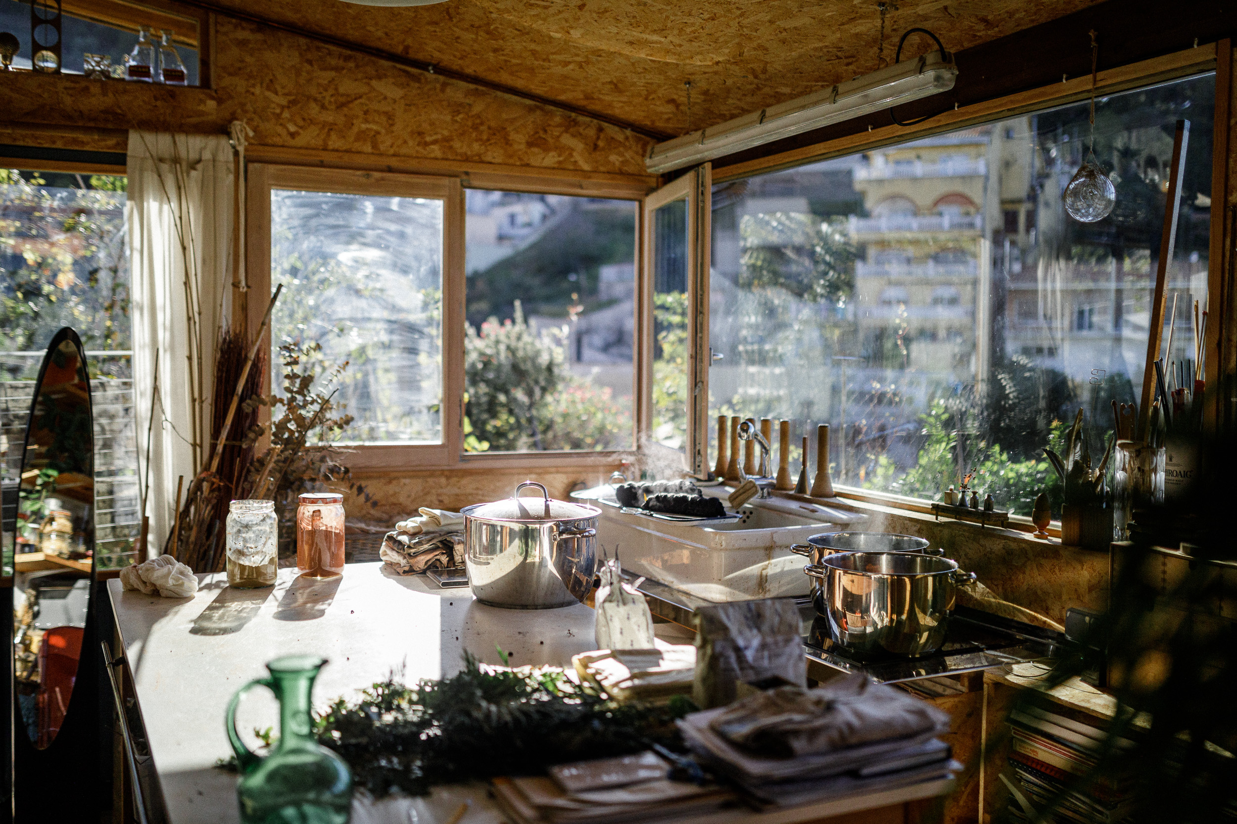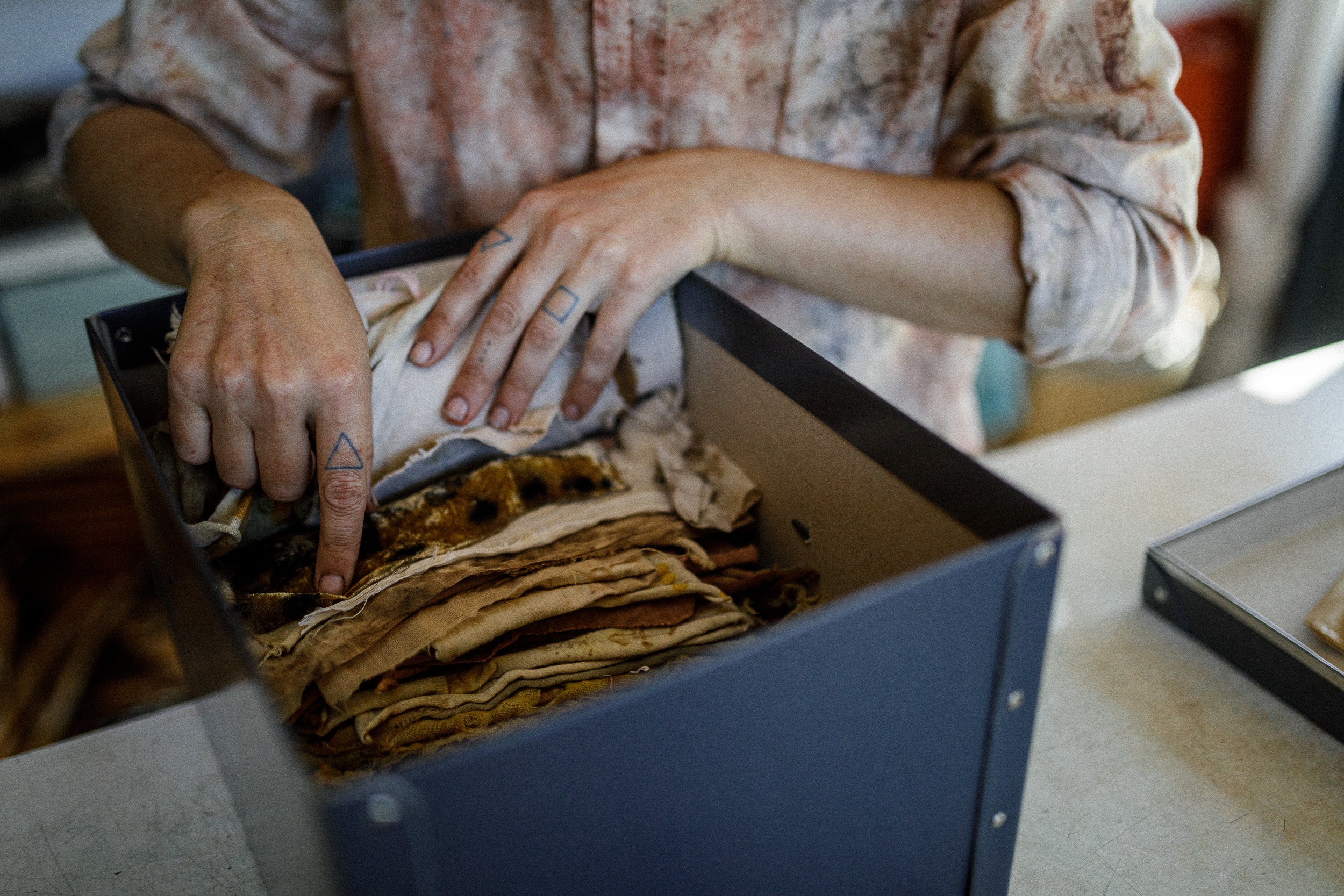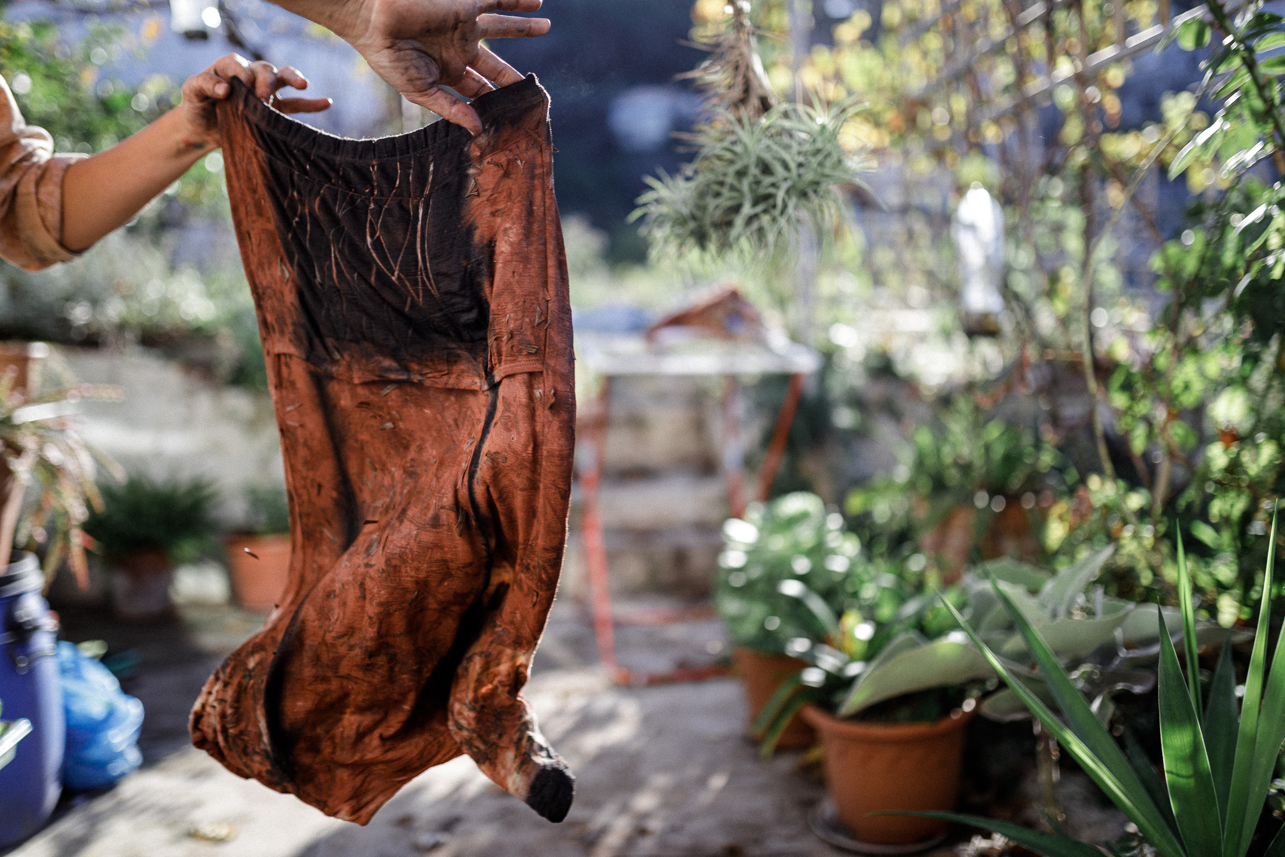 Thus, based on what she knew, she focused on the dyeing process. She went out into the woods and fields to recollect all kinds of plants, herbs, and leaves, to later use them in her workshop to create dyes and compositions on different natural fabrics. In this process, she found a way to herself and discovered her true passion. What used to be a game when she was a child was now what filled her spirit. In January 2017 she started MÃÄD, which stands for My Ancient Affairs Dyed, and symbolizes the reconnection with her young self.