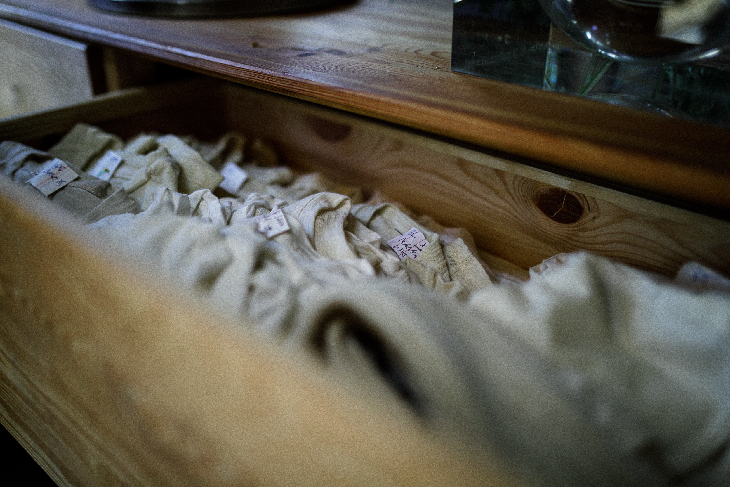 In Italy, Franka grew up in the midst of nature surrounded by the countryside and forests. There, she discovered its purity and she had her first encounter with clothes, her mother’s closet, where she found fabrics, shapes, colors, and textures that marked her. Motivated by the dressmaking world, when she was 20 she started sewing. At first, she was self-taught but, step by step, she discovered and tried out more advanced techniques After some time she moved to Barcelona, where she opened a little shop close to the Palau de la Música. By that time she made all kinds of garments, from handkerchiefs to dresses, controlling the whole process, from acquiring the linen fabric to sewing and dyeing it.
