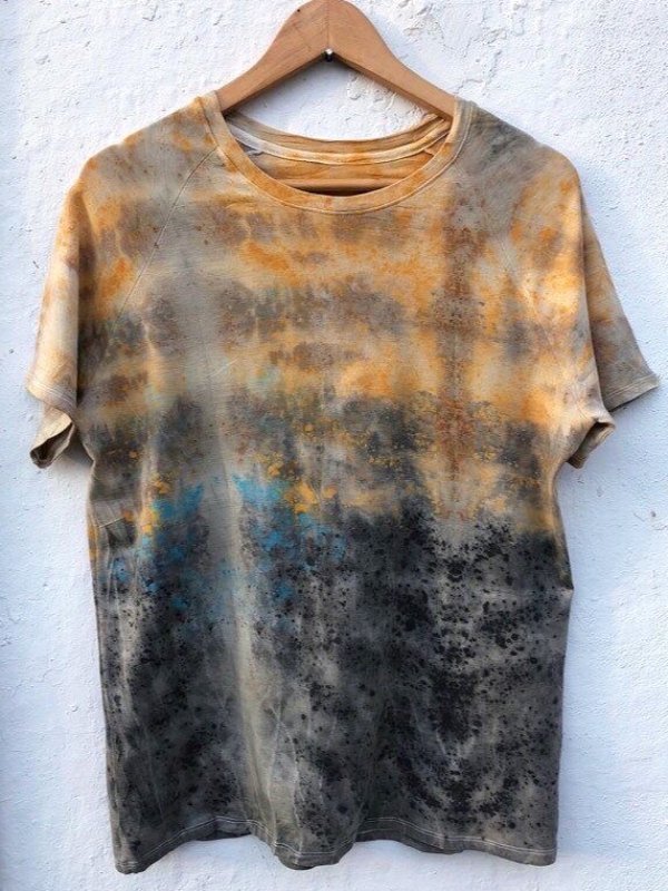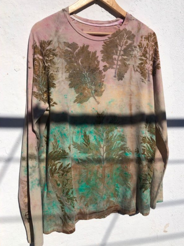 The employed fabrics and dyes are natural and eco-friendly. The cut and sewing processes are local (all in Barcelona) and the transport is done by bicycle. All the dyes and materials for the eco print are obtained without any chemical process and directly from plants, vegetal waste, or minerals, which do not result in toxic waste. Thus, the environmental impact is practically non-existing.