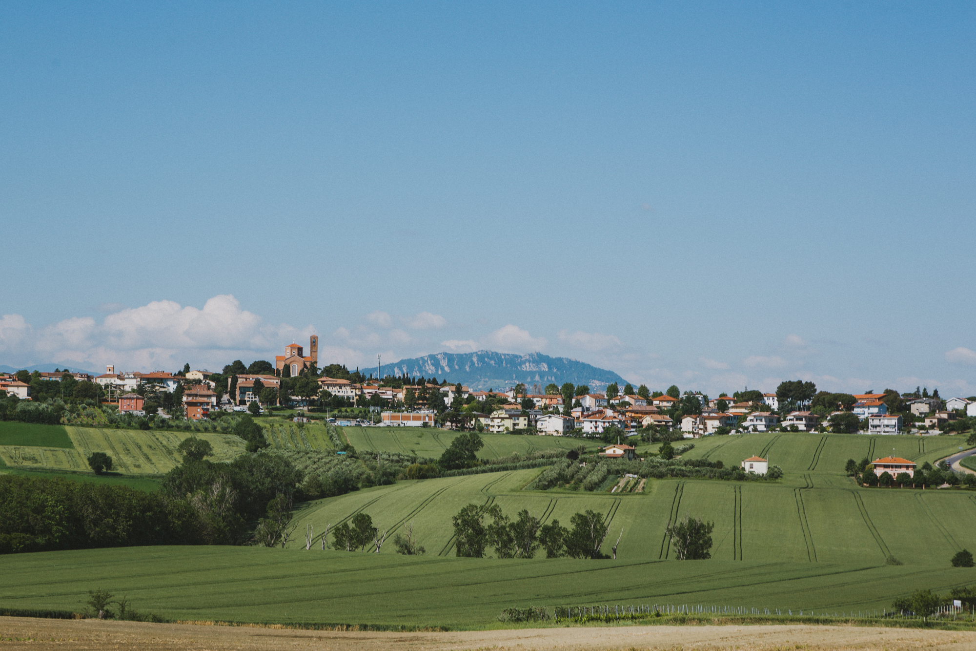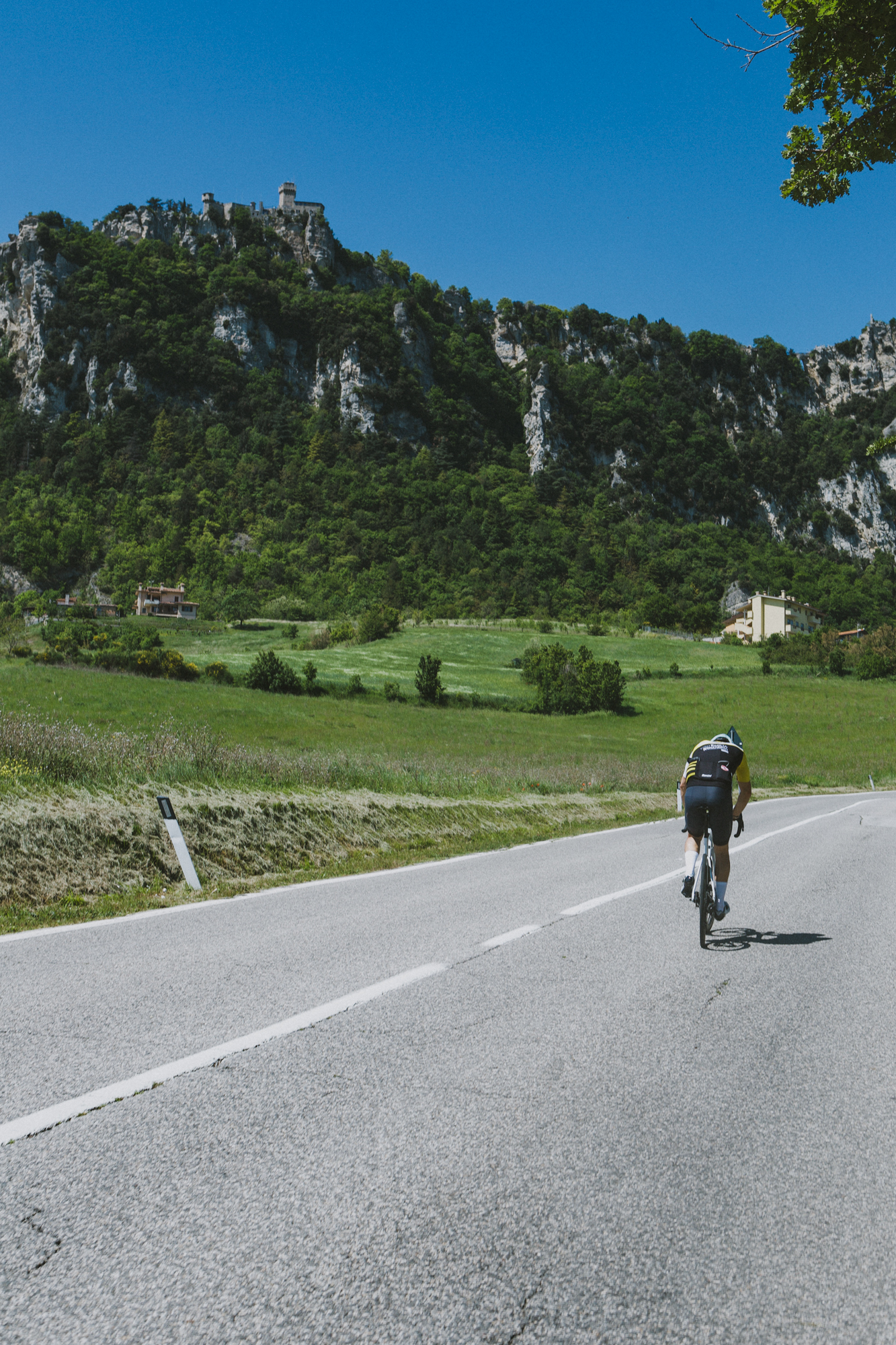 Our hotel was located on the coast in Cattolica. With such a starting point, there are quite straightforward riding options: follow the coast for a flat ride or head inland to reach the hills. On our first day, we embarked to explore San Marino. The route led us through the fields, with a couple of hills here and there, before we started climbing up to the historic city of San Marino. The views gradually opened, with the sea on one side and the mountains rising on the other, separating Emilia-Romagna and Tuscany.