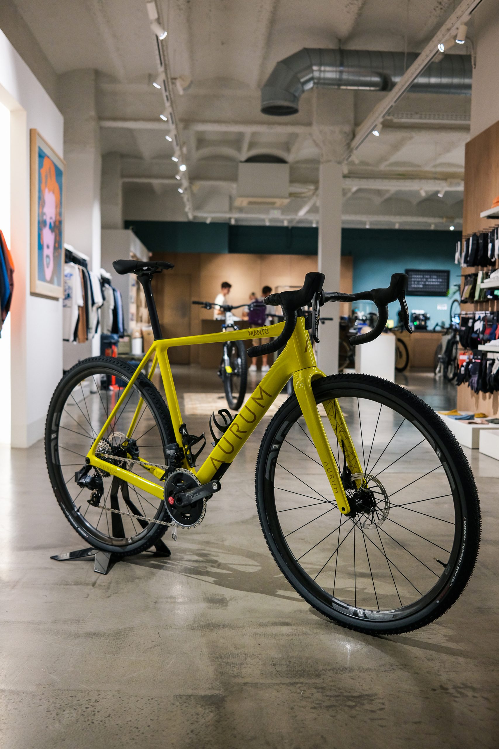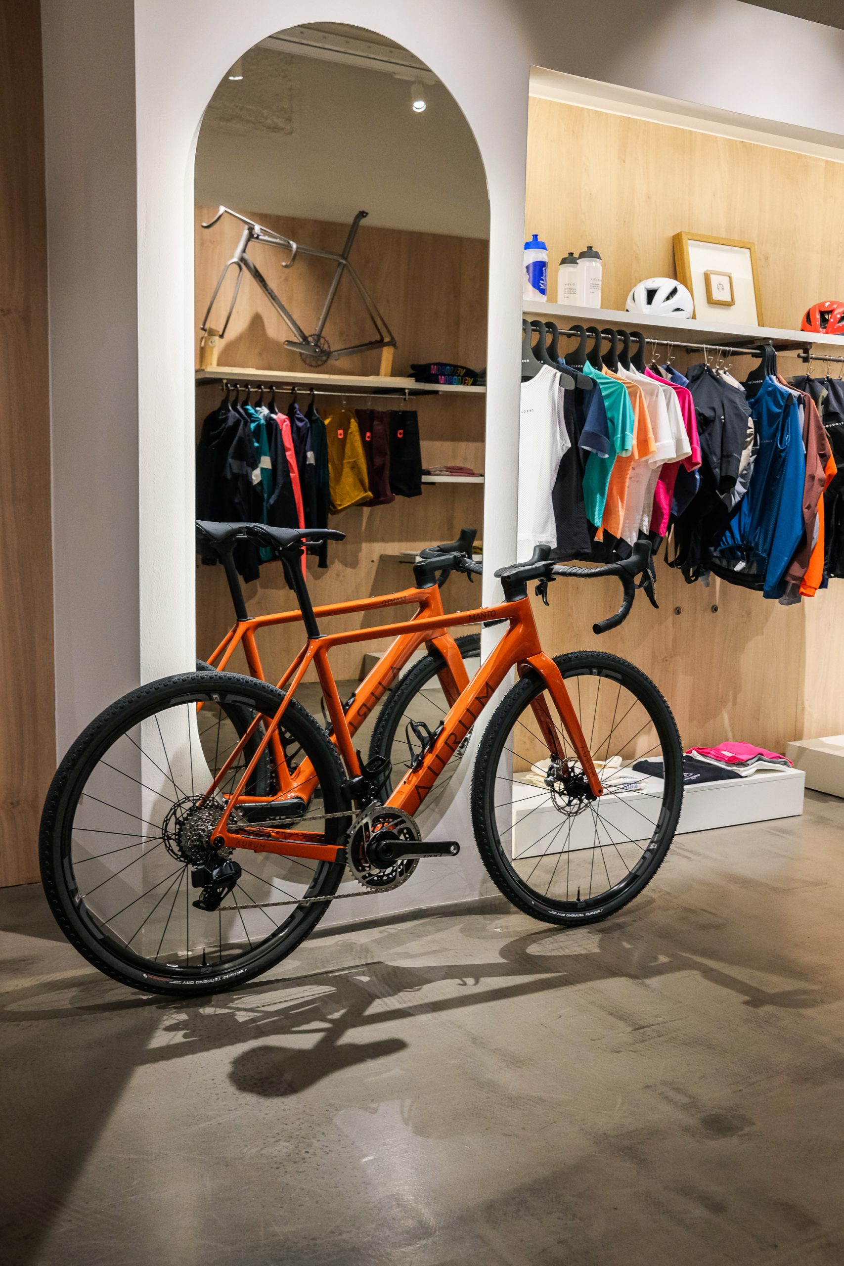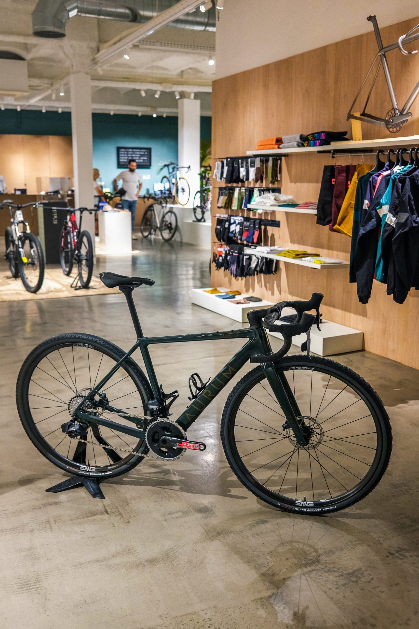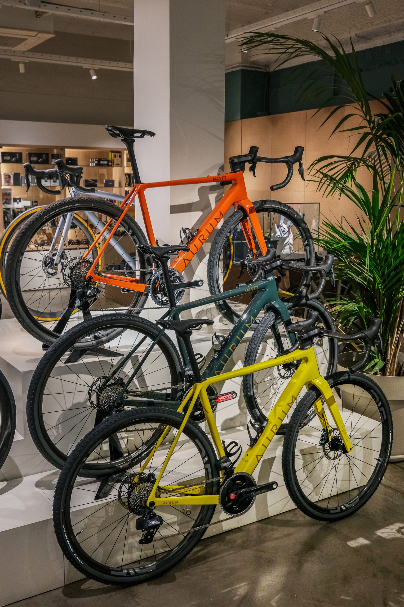 Justo antes del lanzamiento el 28 de abril, tuvimos la oportunidad de echar un vistazo más de cerca a las bicicletas en Velodrom, la tienda de ciclismo de primer nivel de Barcelona. A primera vista pudimos ver el logo de Aurum que destaca sobre el color de fondo plano respetando la línea de los modelos de carretera. Las formas y la geometría de los tubos están perfectamente curadas y se puede observar el esfuerzo puesto, desde la integración de los tirantes en el tubo vertical hasta las líneas suaves y la integración de los cables. Definitivamente, cada detalle cuenta y está diseñado para que vayas cómodo y rápido.