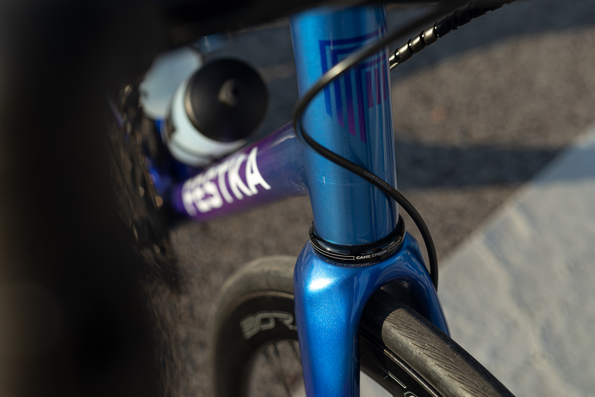 El acabado no tiene peros, no obstante, en la unidad Spectre que hemos probado, no podemos observar la tecnología de tramado de filamentos de carbono que Festka utiliza debido a la pintura. Esta tecnología forma los tubos mediante el trenzado de filamentos de carbono, lo que permite hacer cada capa con unas propiedades distintas, que complementan a las otras, algo radicalmente distinto a un molde. En el acabado de pintura CORE, este tramado puede verse en el triángulo principal. Este tipo de carbono de altísimo módulo, es un rara avis en la industria de la bicicleta debido a la complejidad en su producción, es un producto muy exclusivo. La unión de los tubos se realiza mediante carbono “tradicional” en acabado 3k, con un aspecto de transición sin fallos, limpio.