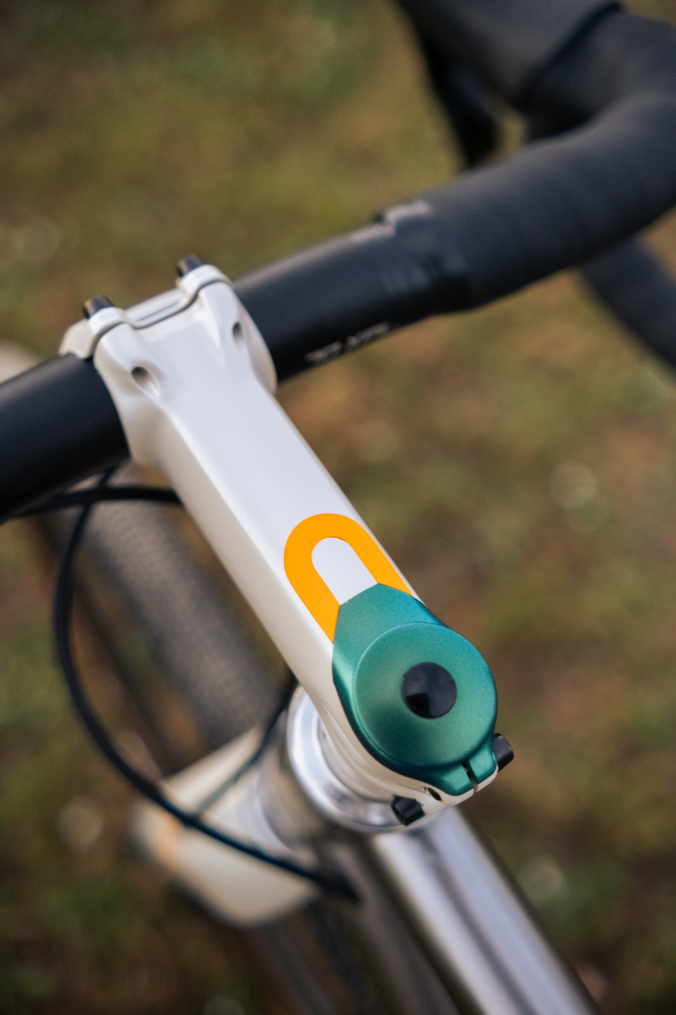 Se utilizó un color arena claro como base y un verde lagarto difuminado con manchas le dio el toque perfecto. Se realizó utilizando pintura húmeda y aplicando un acabado mate. El naranja fluorescente se utilizó para los logos, tanto de Jaegher como de RAW Cycling Magazine, y el dibujo solicitado en la potencia.