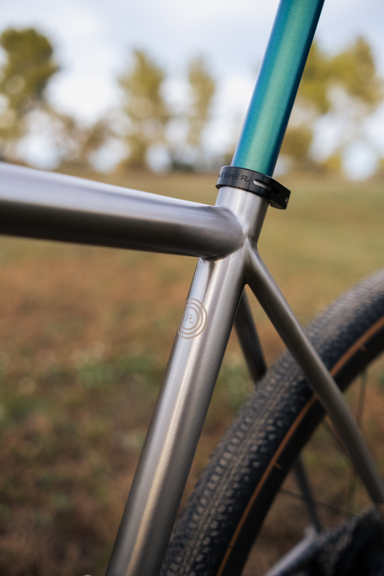 A diferencia de la bicicleta más nueva de Tom Boonen, que se exhibió en Bespoked, optamos por un trabajo de pintura más sutil pero hermoso. El marco tiene un acabado desnudo cepillado a mano con logotipos de CPC (recubrimiento de polímero cerámico). Por su aspecto, ya nos han dicho varias veces que parece una bicicleta de titanio.
