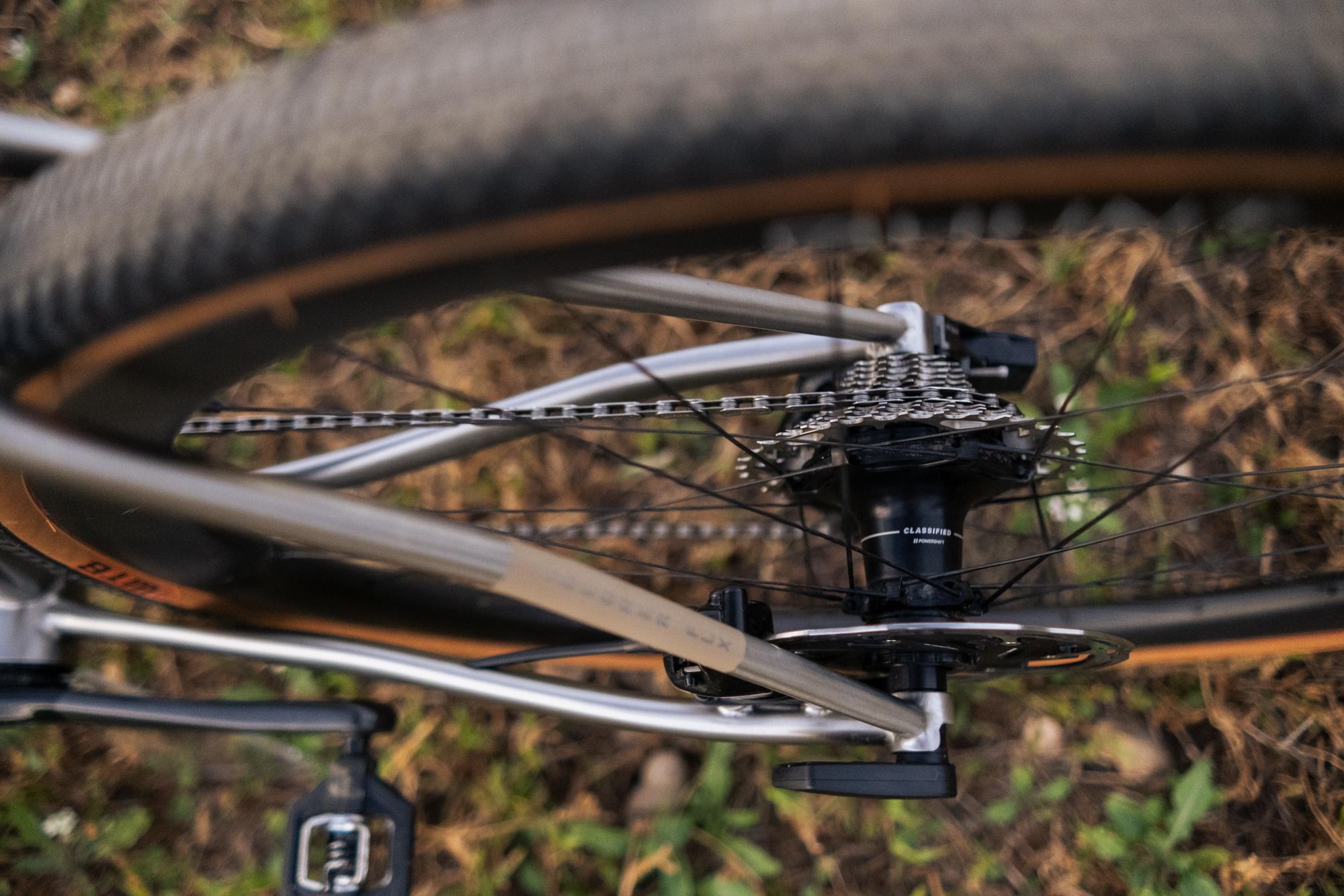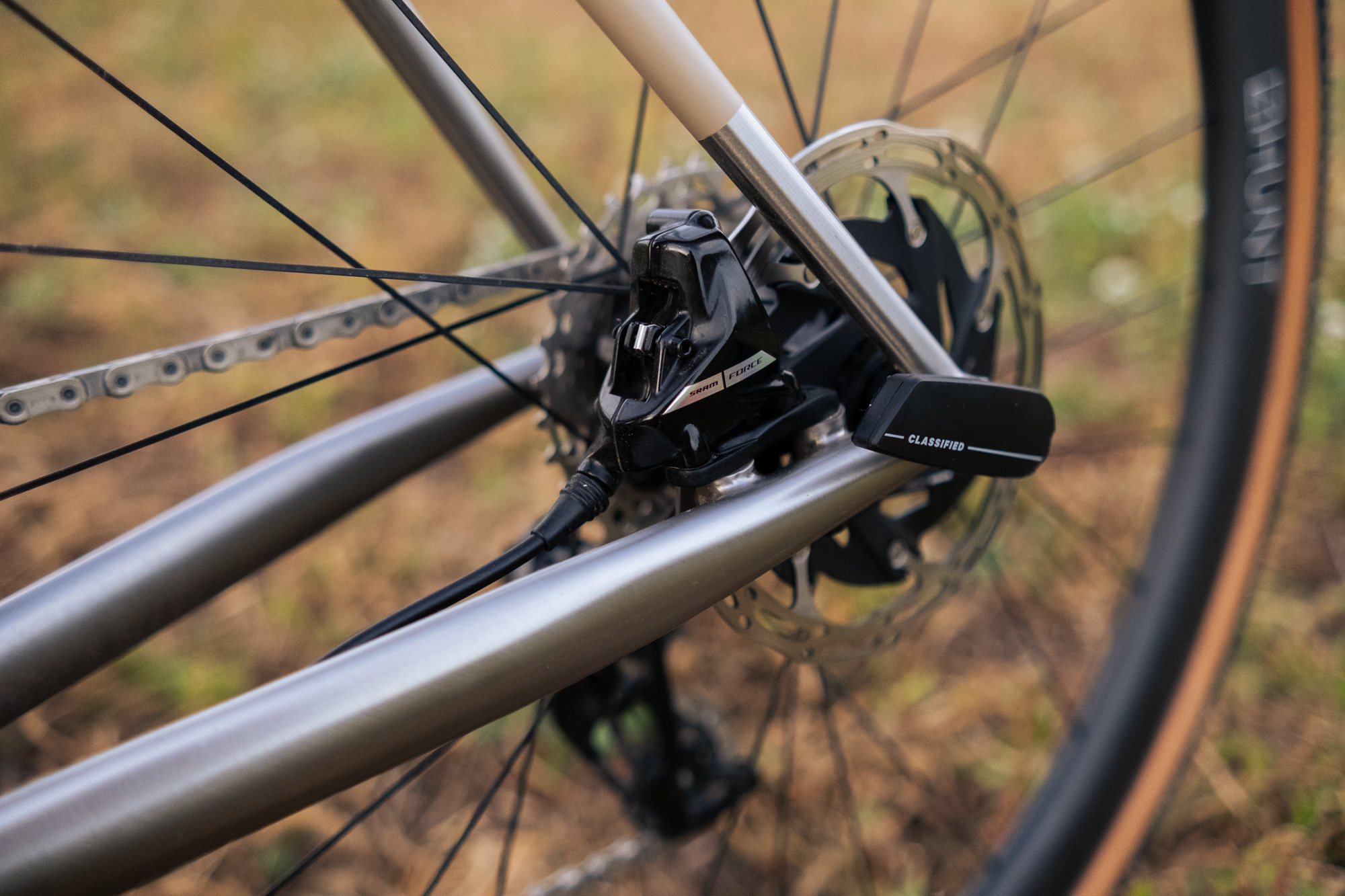 Además del material del cuadro, la geometría y la pintura, también teníamos total libertad de elección en lo que respecta a los componentes. La transmisión es una SRAM Force AXS XPLR 1x, pero incluimos el sistema Classified Powershift para poder contar con un segundo plato delantero. Ah, ¿aún no sabes de qué se trata Classified? La empresa belga está arrasando en la industria del ciclismo con la forma innovadora en la que combina los beneficios de las transmisiones 1x y 2x a través de un elegante sistema inalámbrico que elimina el desviador delantero.