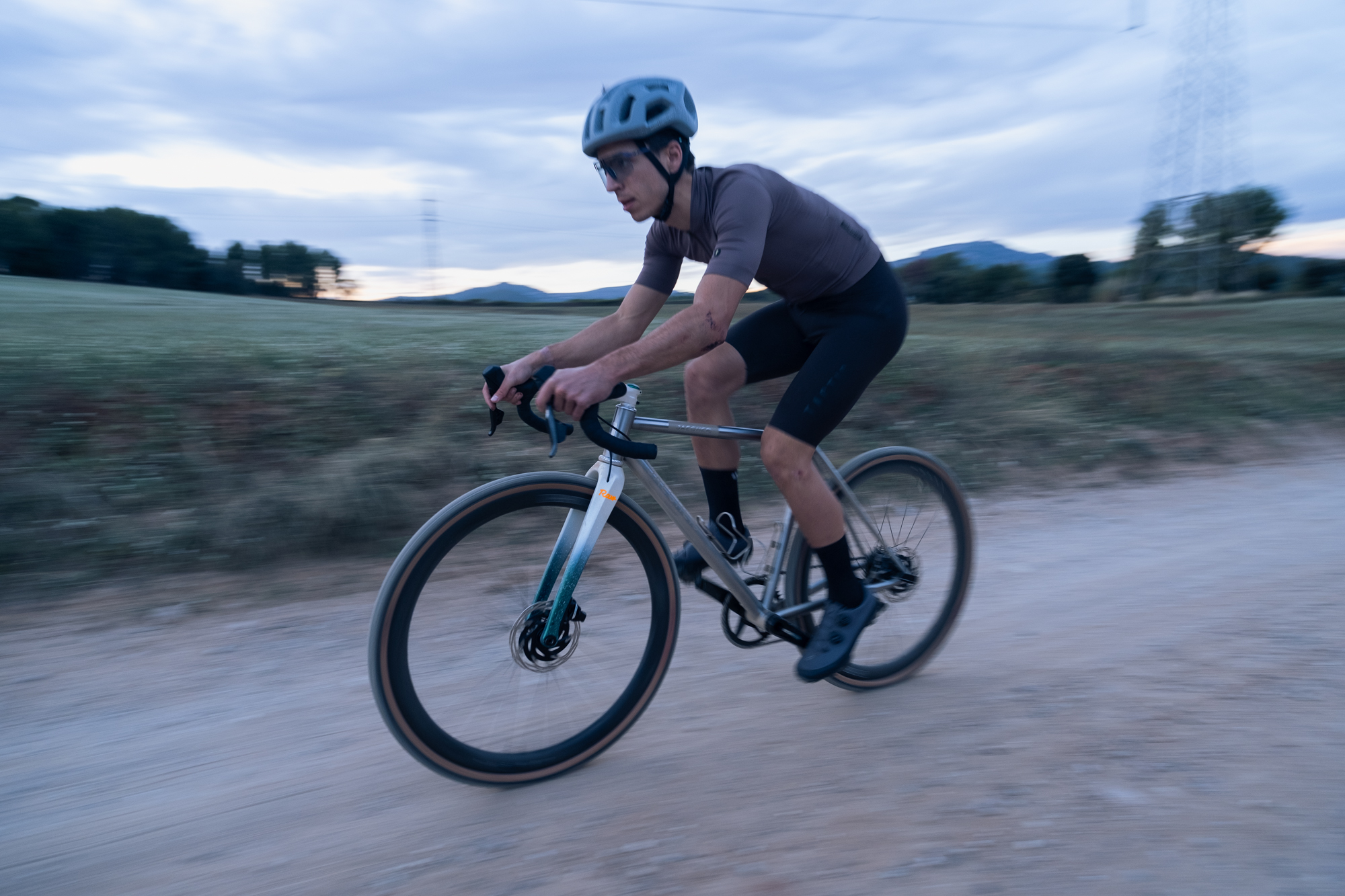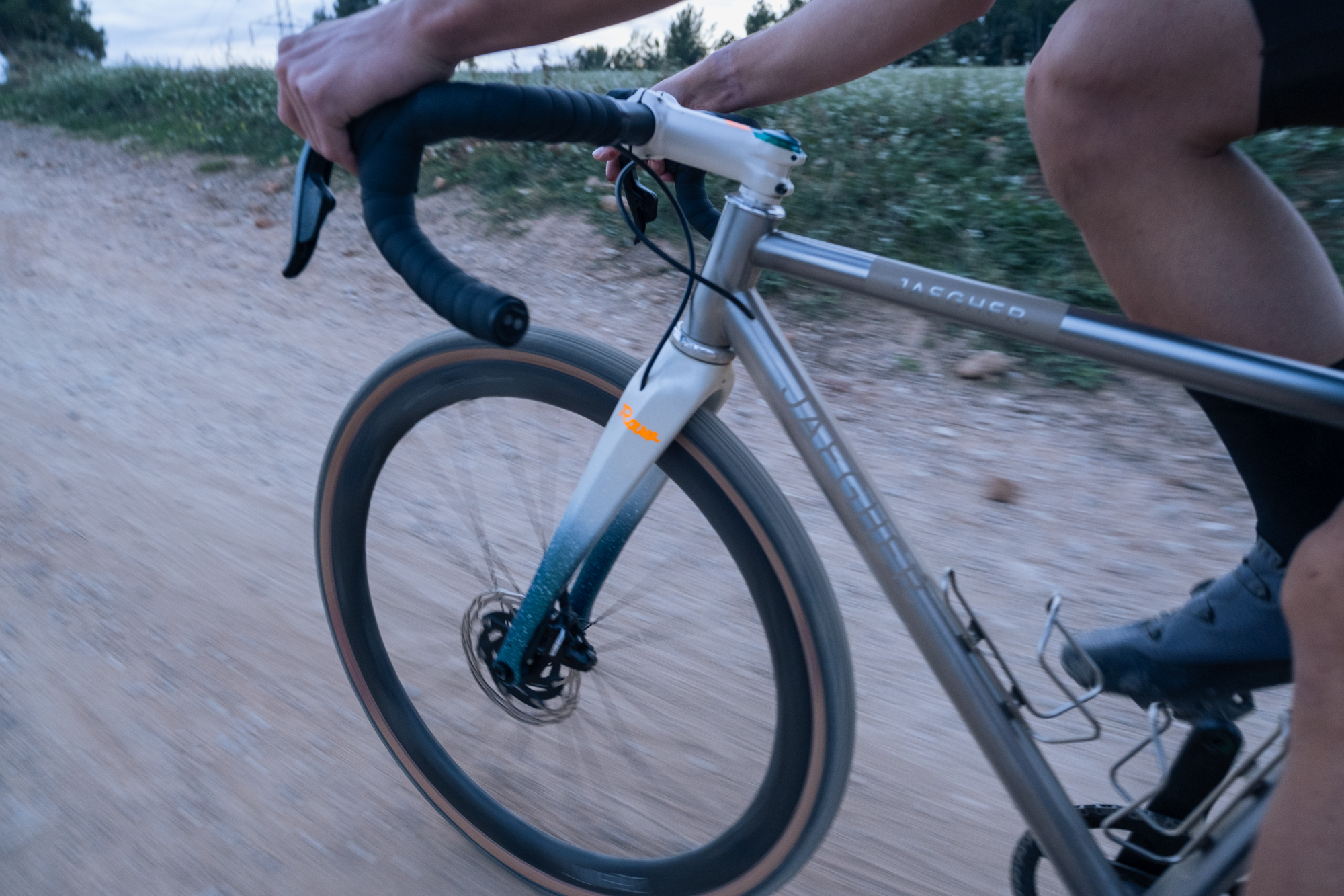 Más allá del rendimiento, nos enamoró el sonido de las pequeñas piedras golpeando el acero inoxidable, algo que incluso puede sonar masoquista. Los destellos fluorescentes de los detalles de color naranja brillante, cuando la luz del sol comienza a desvanecerse, dan un toque estético perfecto a toda la construcción. Javi por fin tiene una bici de gravel, y vaya bici con la que empezar.