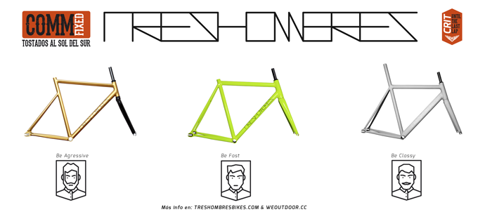 Ahora somos más pero hubo un momento crítico que éramos 3 y cogidos con pinzas, buscábamos cuadros casi por necesidad y de repente encontramos TRESHOMBRES. Vimos el material y era jodidamente alucinante: soldaduras muy cuidadas, ligero de peso, diseño minimalista, geometrías perfectas, sin florituras, etc. y agárrate que viene lo mejor: tienen tres modelos de cuadro, con tres iconos por modelo que son caras, y que podríamos ser nosotros tres. Les escribimos mail y en dos semanas formaban parte de la estructura.