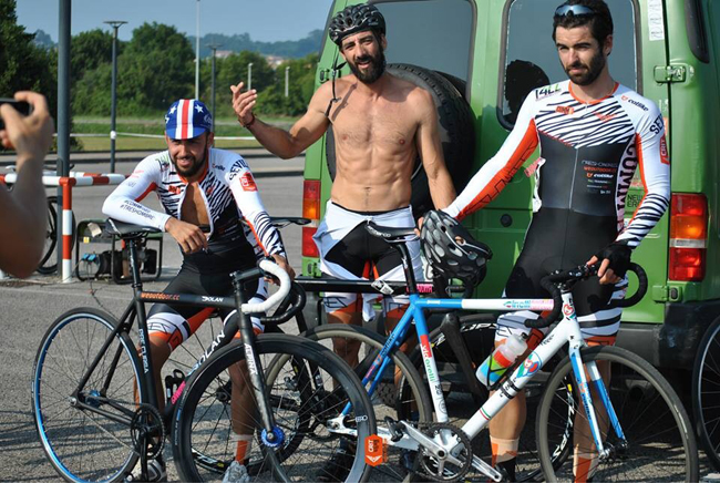 Al principio nosotros solos. Luego nos fuimos poniendo serios con todo -marketing, más entrenos, objetivos, intereses comerciales, carreras de carretera, etc. y Mr. Javier Sola (un Joven pero ex técnico de la selección andaluza de pista) y ahora el que dirige TRAINING4LL nos propuso entrenarnos y hacer las biomecánicas de todas las bicis de pista. Ahora todas las semanas llevamos un planning y mensualmente hacemos controles de potencia y ver cómo vamos. El estado de forma es lo que marca la diferencia de ser un buen equipo a ser un equipo con opciones. Sí entrenamos mucho juntos, ¡de eso se trata!