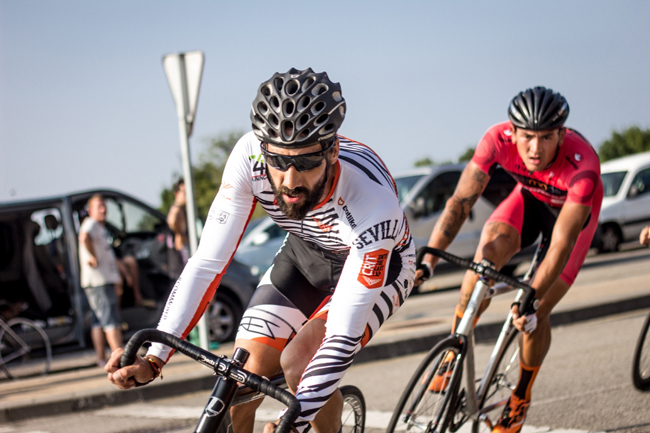 En mayo de 2013 Monta y Pedalea Shop organizó en Sevilla una CRITERIUM dentro del marco de una especie de Festibike Local. Aunque ya nos conocíamos de algunas quedadas en la ciudad, fue allí donde pasamos más tiempo juntos. La carrera la ganó Fernando escapado porque estaba compitiendo en MTB y tenía otro ritmo. Segundo Carlos Beltrán seguido por Javi Graziano. Como anécdota podemos contar que Emi fue doblado como dice él -4 u 8 veces- hacía más de 12 años que no pedaleaba algo que no fuera dar saltos BMX. Ahora solo tienes que verlo correr… es como un buque moviéndose sobre asfalto. No ves bici, ¡solo ves un hombre sobre ruedas! ¡Echamos buenas risas en esa carrera! Por supuesto después nos fuimos de cervezas juntos.