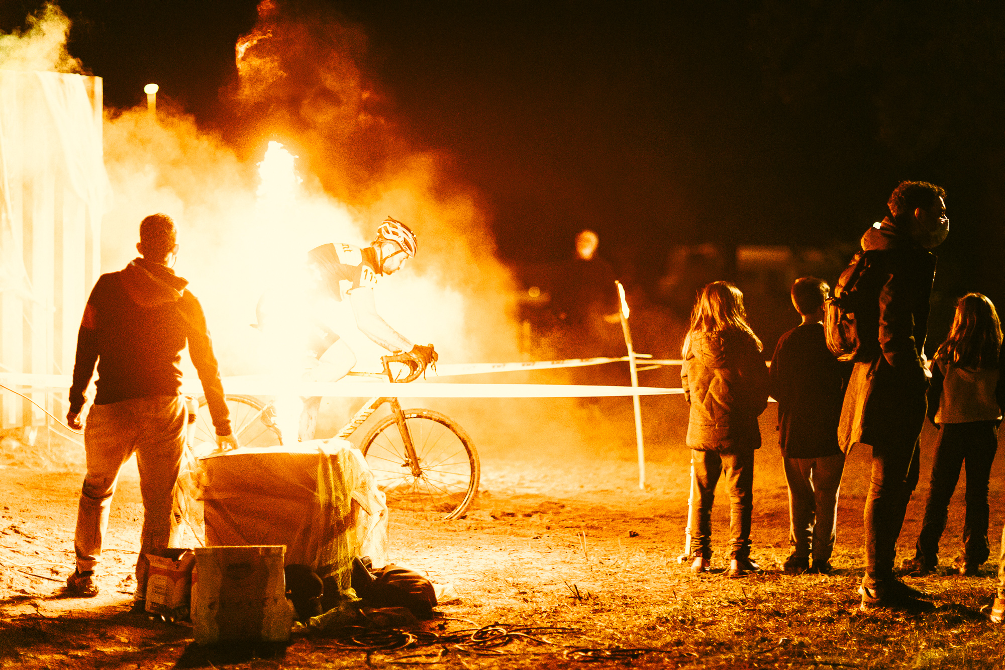 A escasas horas de acabar el evento, gran parte de los participantes tomarían la salida en los campeonatos de Catalunya de CX que se realizaban la mañana del día siguiente en el mismo trazado, pero en sentido inverso. El Dark Cross 2020 acabó con unos espectaculares fuegos artificiales, mientras el aquí presente se retiraba esquivando el barro. Pregunté a Albert, ideólogo del circuito y principal promotor del mismo, si no se habían guardado nada para el campeonato del día siguiente. “Porque la carrera buena era la de hoy” – contestó guiñando el ojo.