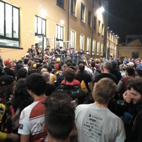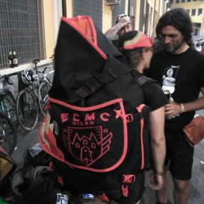 Y ahora sí, nos apuntamos para correr el alleycat que salía desde ahí, corriendo con gente de todo el mundo por las calles de Milán, ¡una salida con más de 200 personas! Nombre como Chas Christiansen, Austin Horse, Andrea Schilirò, entre otros míticos mensajeros de Europa como Ivan Lapausa, Batiste, Beni, Martín etc.