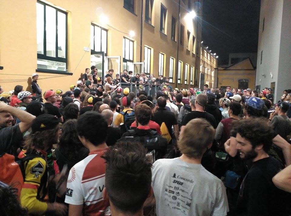 Y ahora sí, nos apuntamos para correr el alleycat que salía desde ahí, corriendo con gente de todo el mundo por las calles de Milán, ¡una salida con más de 200 personas! Nombre como Chas Christiansen, Austin Horse, Andrea Schilirò, entre otros míticos mensajeros de Europa como Ivan Lapausa, Batiste, Beni, Martín etc.