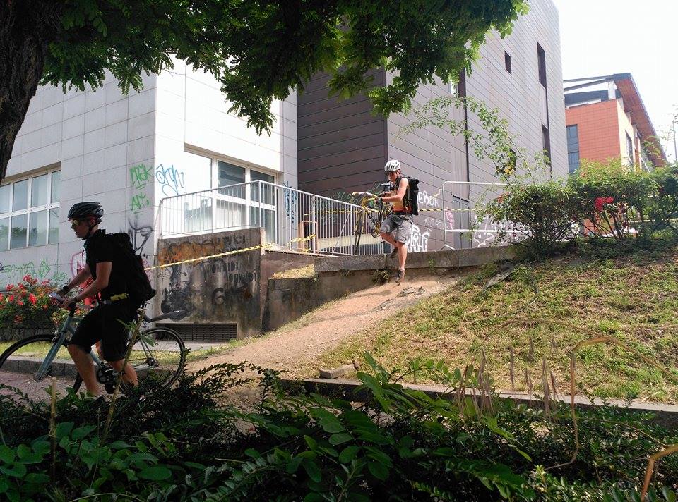 Sábado 29: Empezaban las clasificaciones para la final del domingo, un circuito cerrado con 15 checkpoints, en los que tenemos que recoger y sellar según nos ponga en cada manifiesto cuantas más direcciones, más posibilidades tienes de clasificarte, en total nos dejan una hora y media para hacerlo lo mejor posible. El circuito tenía todo tipo de obstáculos: rampas, escaleras donde tenías que bajarte de la bici etc.
