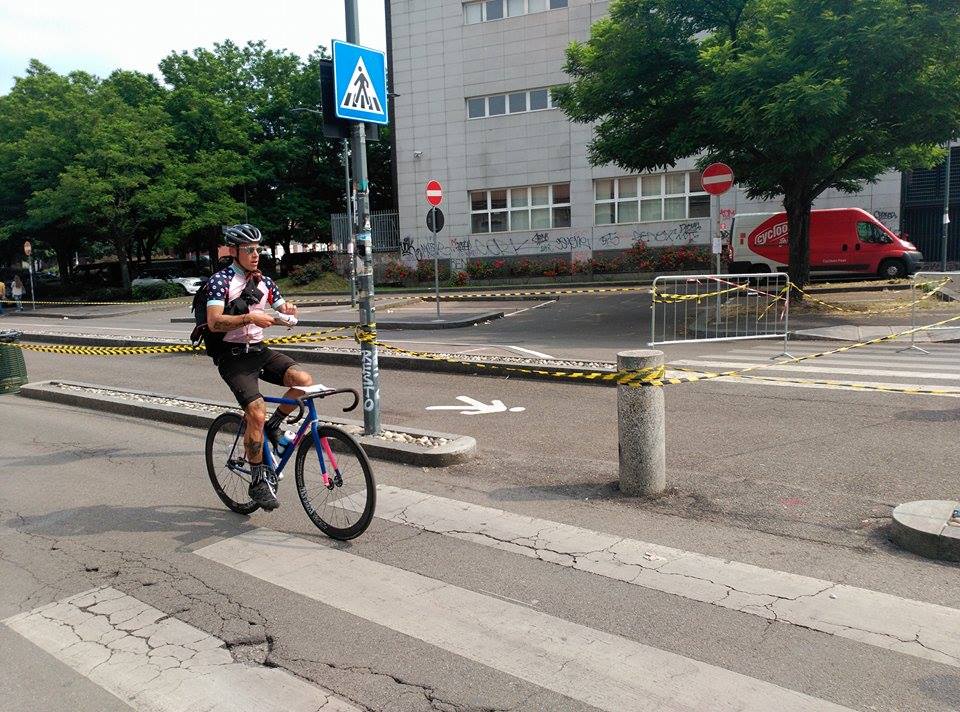 Después de la clasificación tenían preparado un alleycat para los que se quedaran con ganas de mas, en esta corrieron sólo 100 personas ya que si no eras de Milán ¡lo tenías complicado! Nos dieron los manifiestos y una vez listos salimos en un grupo de 20 en los que nos guiaban varios italianos, pasado una hora y, perdiéndonos en el último checkpoint, conseguí llegar en la posición 23, resultado que me dejó bastante contento. En cuanto a detalles de la carrera y la conducción, respetan bastante cuando ven entrar 20 ciclistas locos en un cruce jajaja… la parte mala de la ciudad, el adoquín y las vías del tranvía. Algún que otro susto nos dimos pero, en ese sentido, nuestras bicis respondieron muy bien en cuanto a maniobra y callejeo.