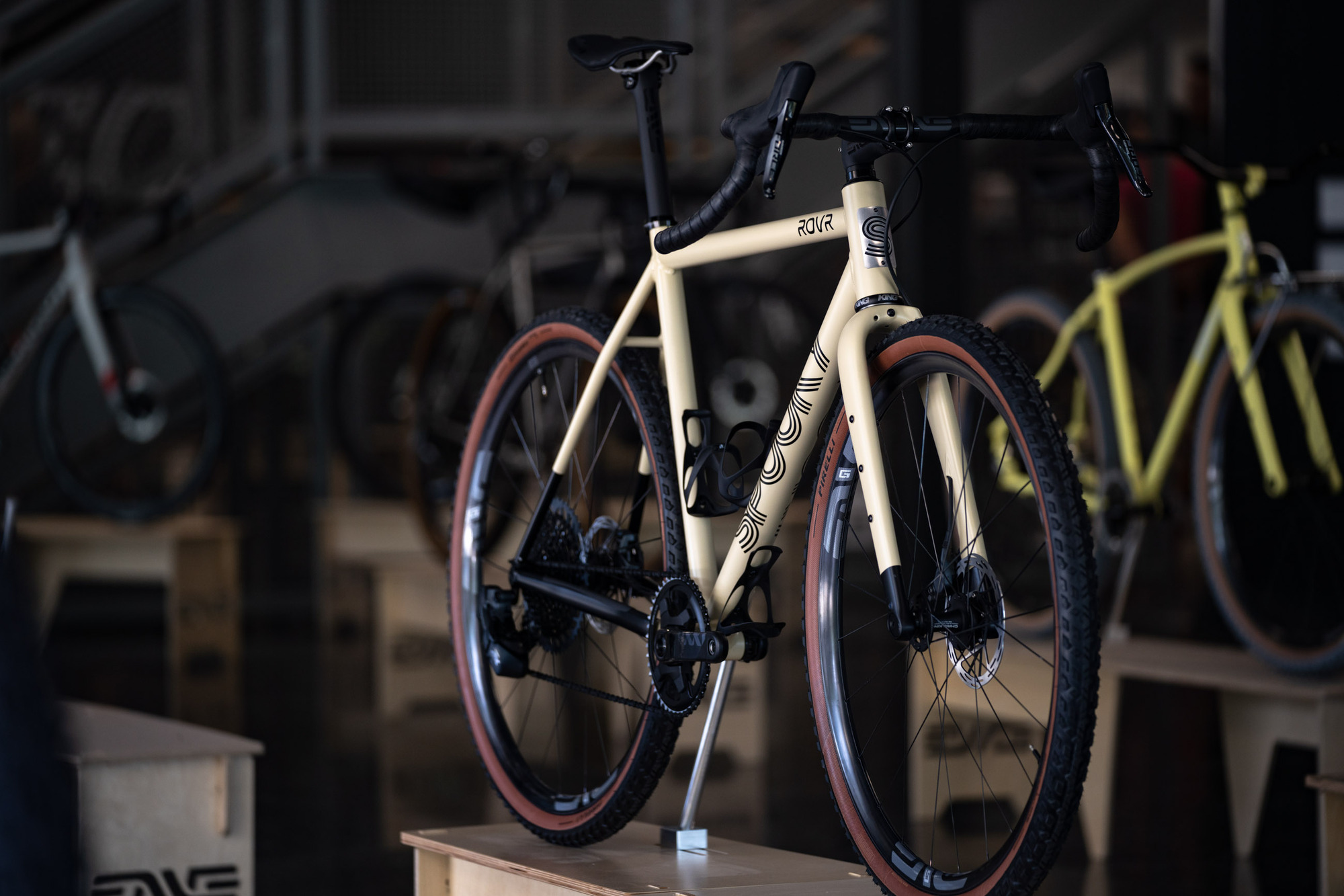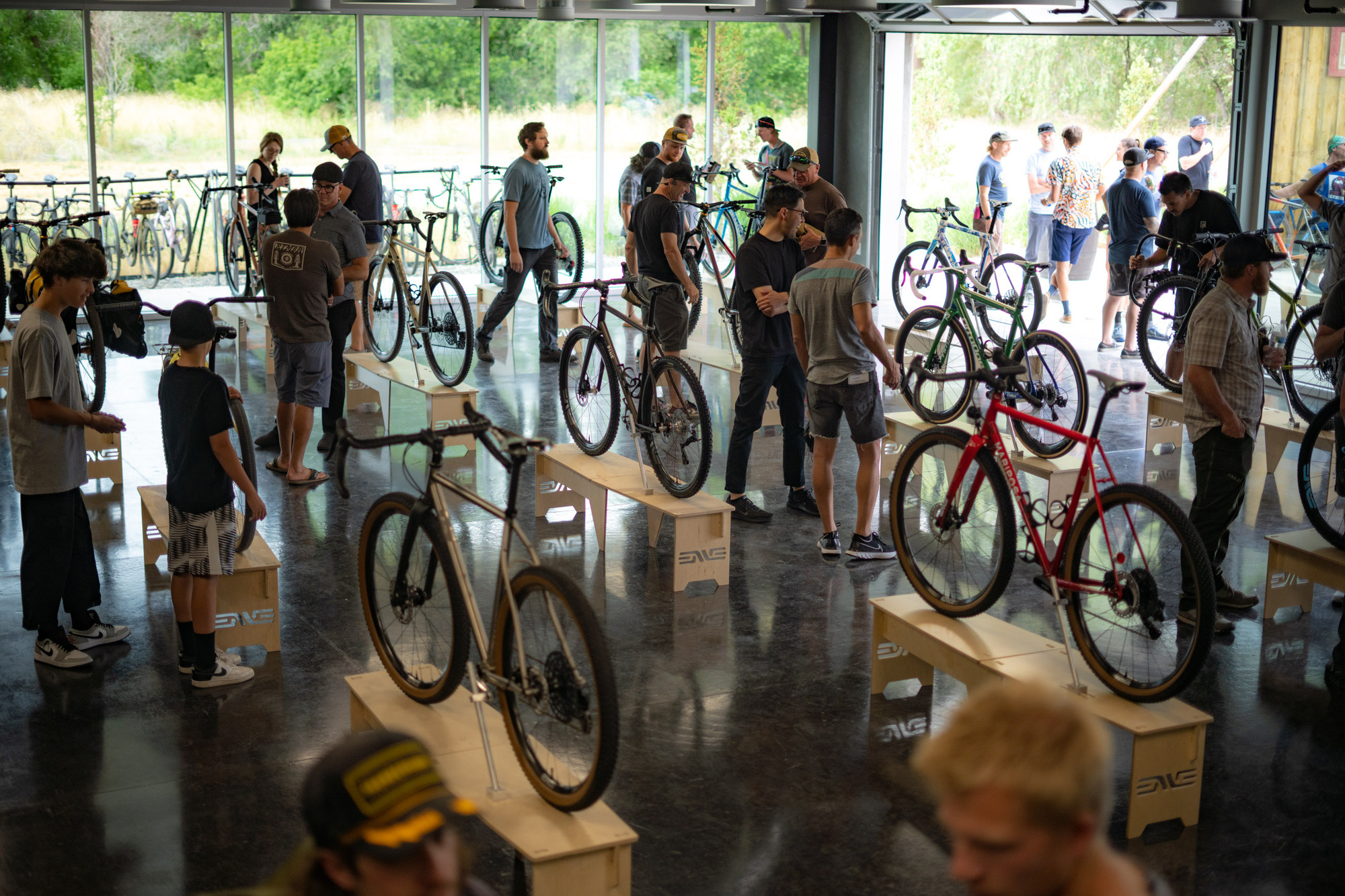 Un total de 35 bicicletas totalmente diseñadas y fabricadas por los artesanos invitados se mostraron en la ENVE’s Open House del viernes, como si de un mini NAHBS se tratase. El evento permitió exhibir sus últimas creaciones, ya fuesen bicicletas de carretera, gravel o de montaña fabricadas en acero, aluminio, titanio o carbono.