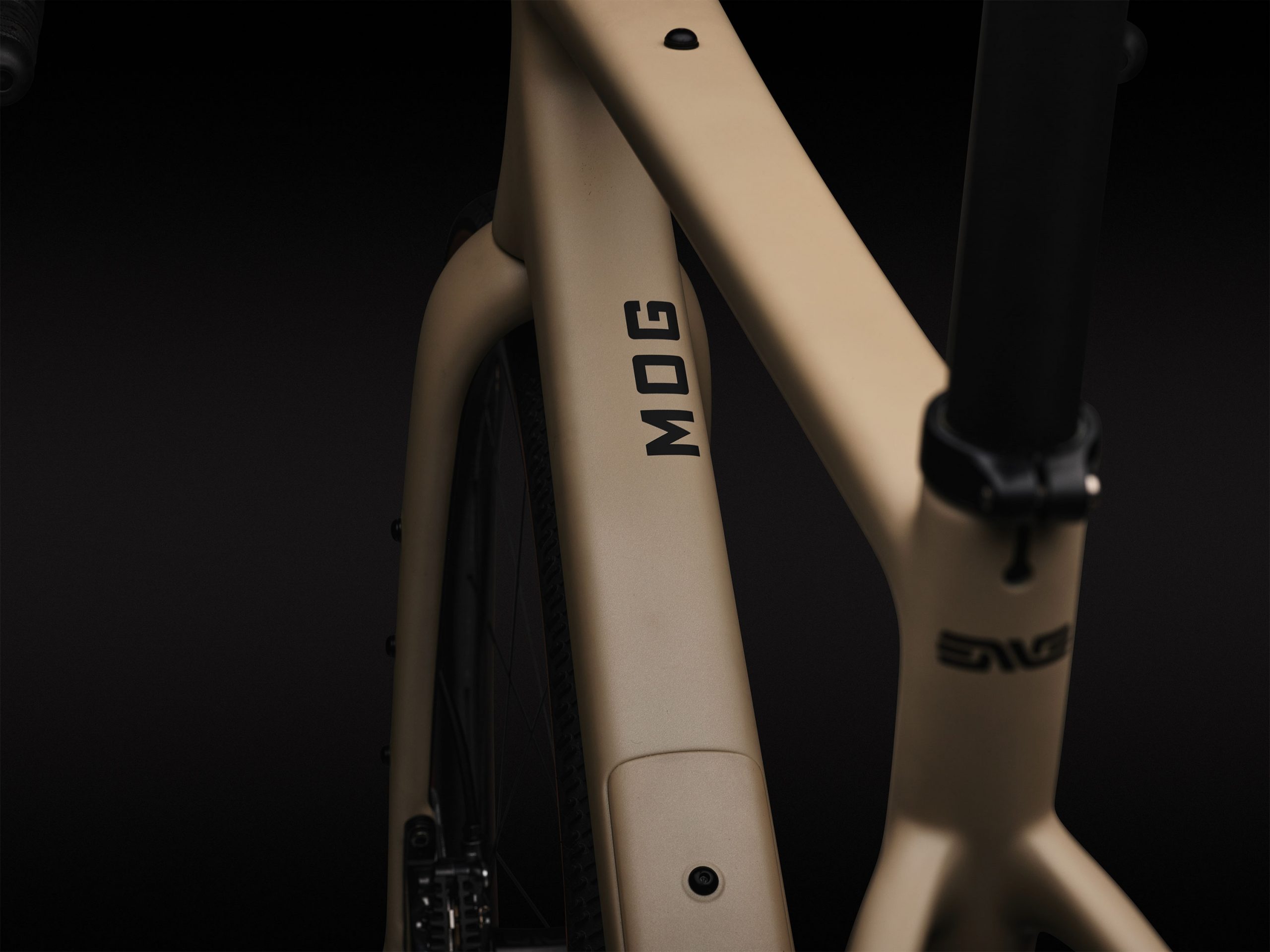 Gracias a la experiencia en el desarrollo de cuadros aerodinámicos para los dos modelos anteriores de bicicleta de carretera, la MOG toma prestadas sus formas de tubo, aunque la aerodinámica no fuera la principal prioridad de esta bicicleta. Los cables se enrutan internamente con el sistema IN-Route de ENVE.