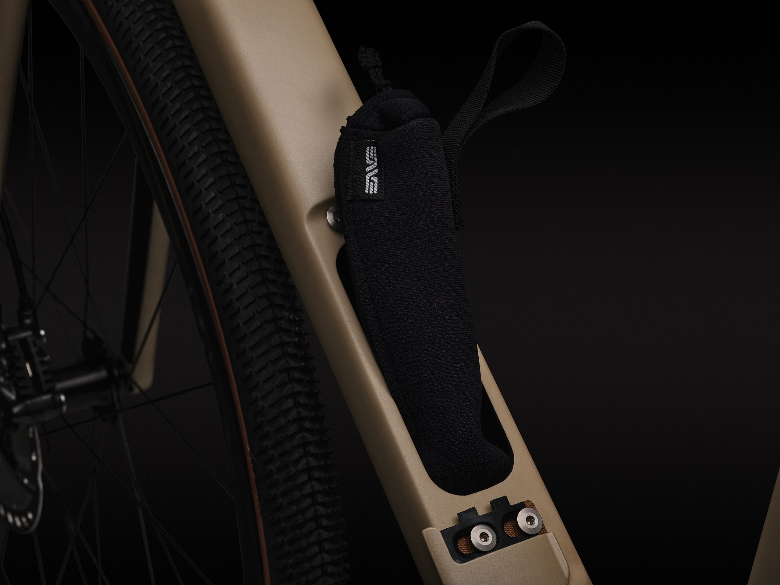 Con un gran espacio libre para los neumáticos, el cuadro se adapta a neumáticos de hasta 50 mm de ancho. Para condiciones de barro, ENVE recomienda neumáticos de 40 mm. En particular, el modelo viene con el compartimento ENVE Cargo Bay, un almacenamiento en el tubo diagonal del cuadro para proveer más espacio para guardar herramientas o comida, completando los soportes de portaequipajes y bolsas a las cuales ya estamos acostumbrados.