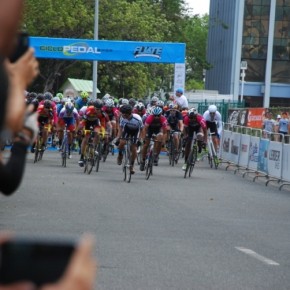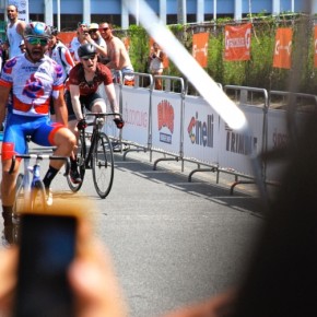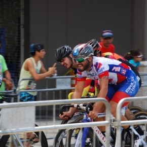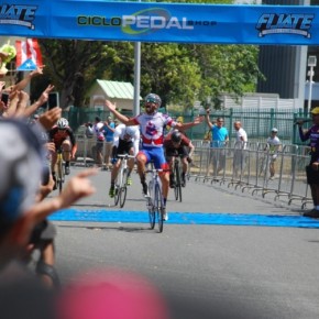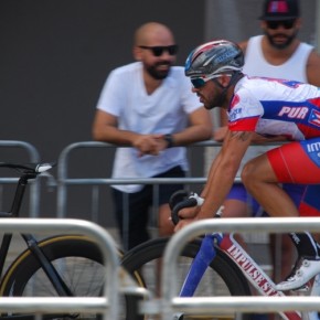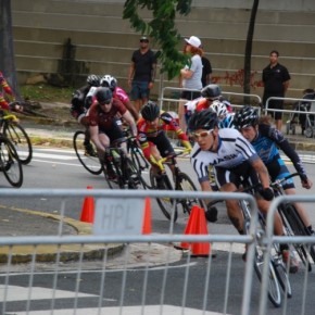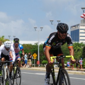 El circuito más que veloz era técnico, tres curvas de 180º, aun así el ritmo era trepidante. Eduardo Colón, del equipo Impulse Stage Puerto Rico, quien salió de los tabloncillos del Velódromo para probar el asfalto en los Critériums, siempre estuvo colocado en las primeras posiciones y en las primeras vueltas sorprende realizando una escapada. El público emocionado, no paraba de alentarle.