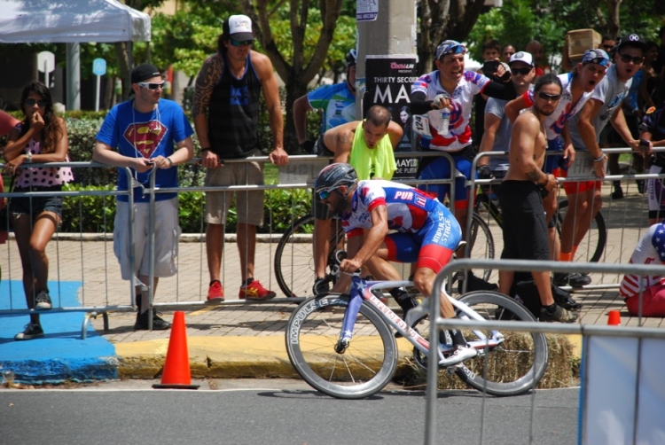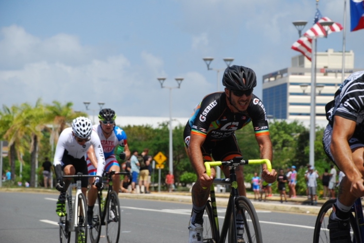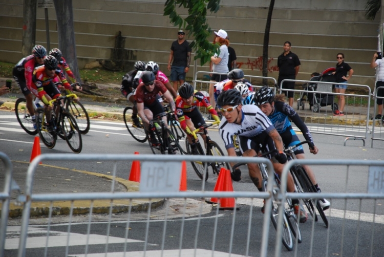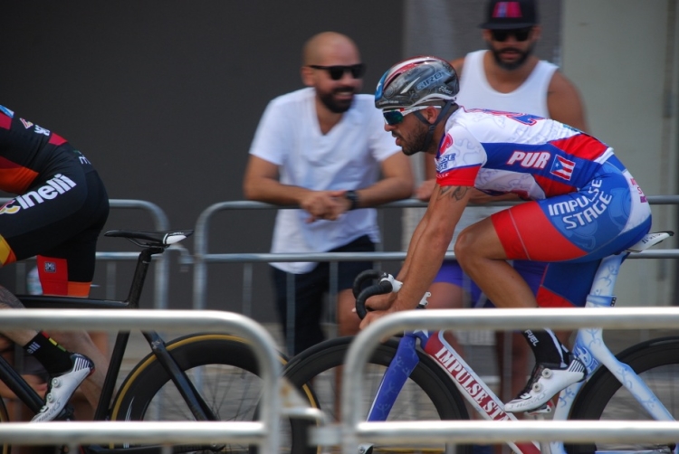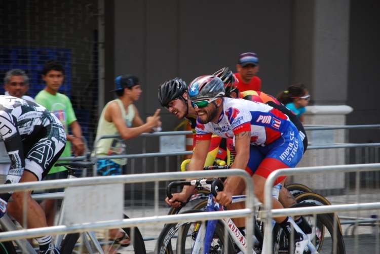 El circuito más que veloz era técnico, tres curvas de 180º, aun así el ritmo era trepidante. Eduardo Colón, del equipo Impulse Stage Puerto Rico, quien salió de los tabloncillos del Velódromo para probar el asfalto en los Critériums, siempre estuvo colocado en las primeras posiciones y en las primeras vueltas sorprende realizando una escapada. El público emocionado, no paraba de alentarle.