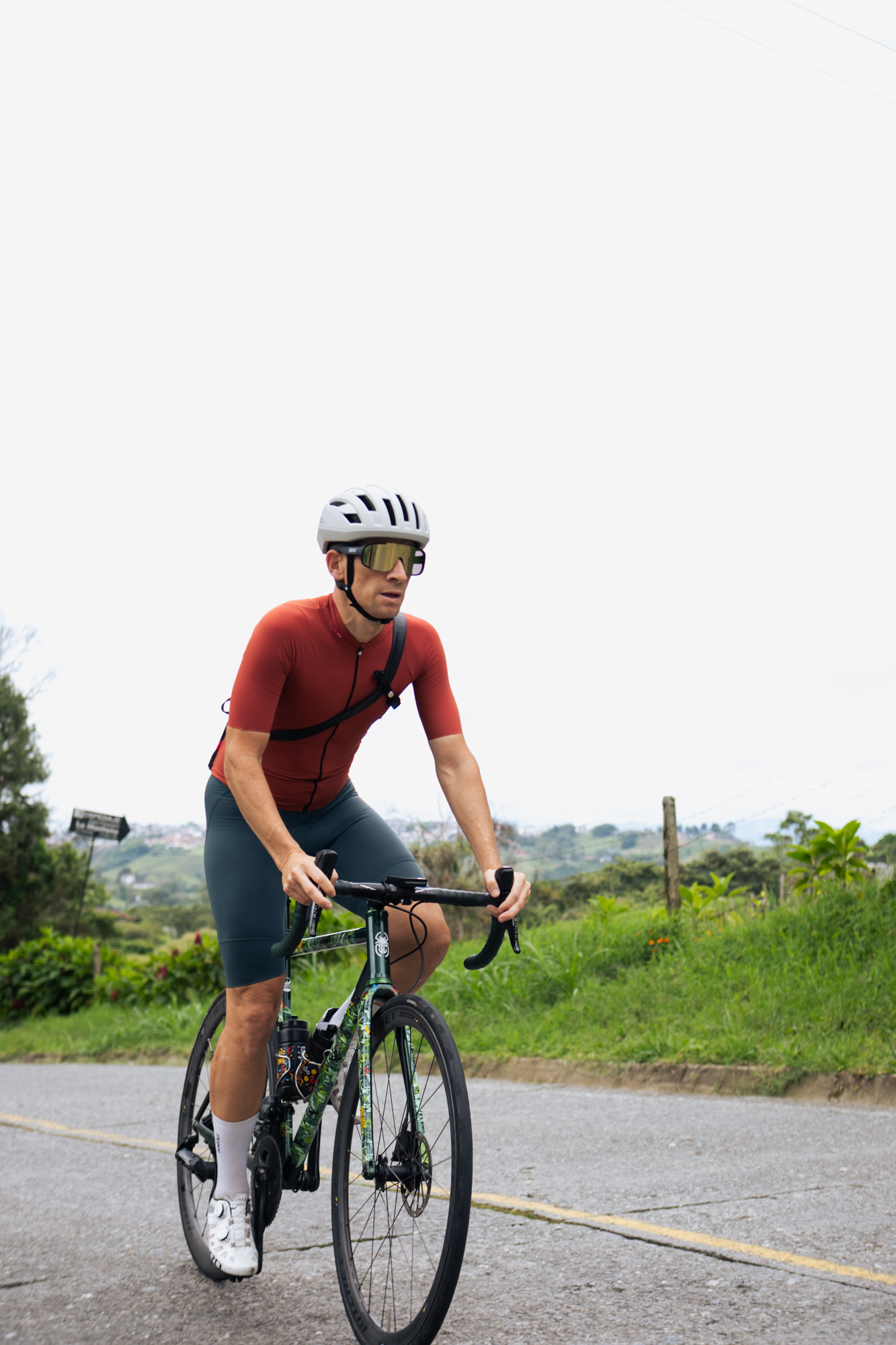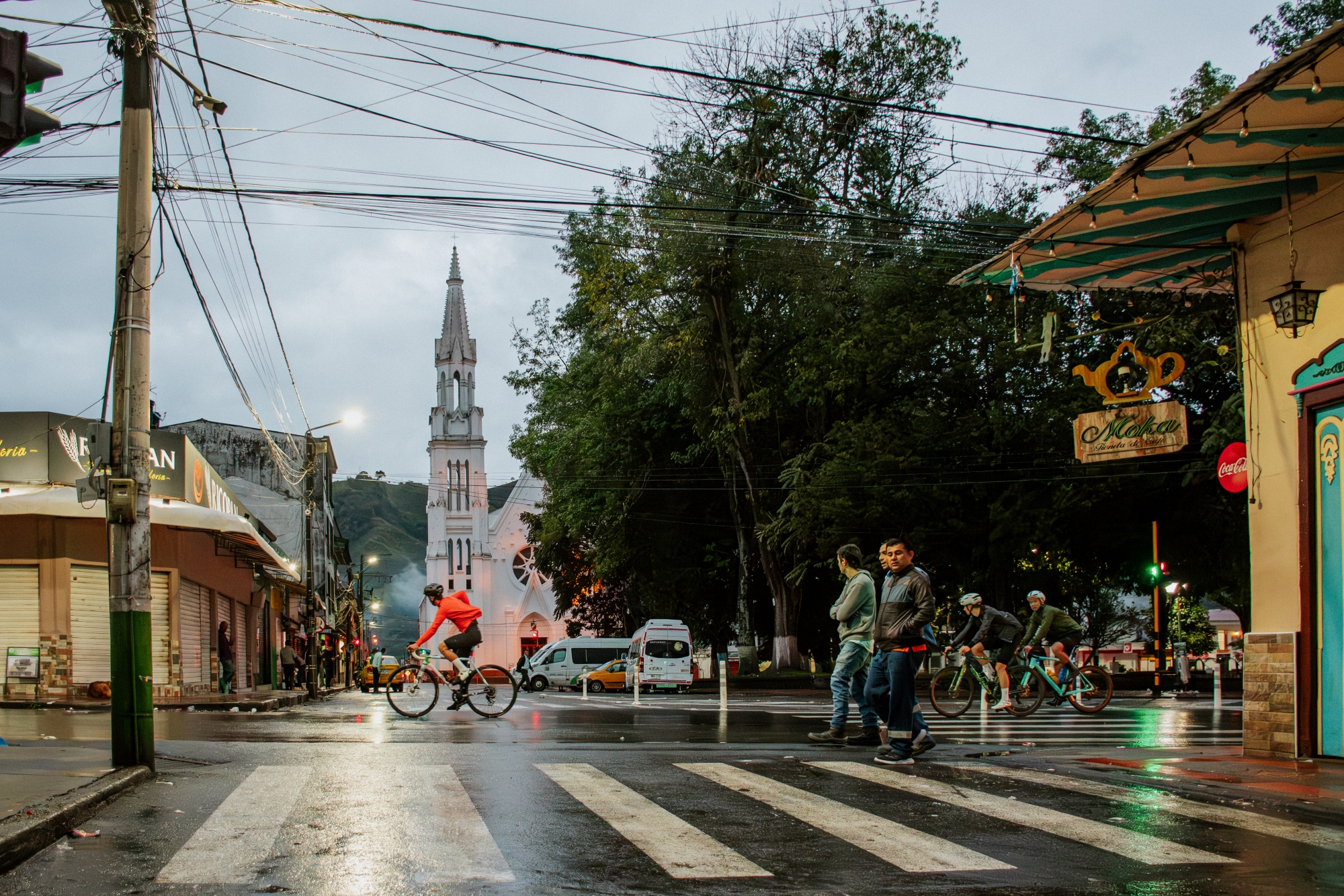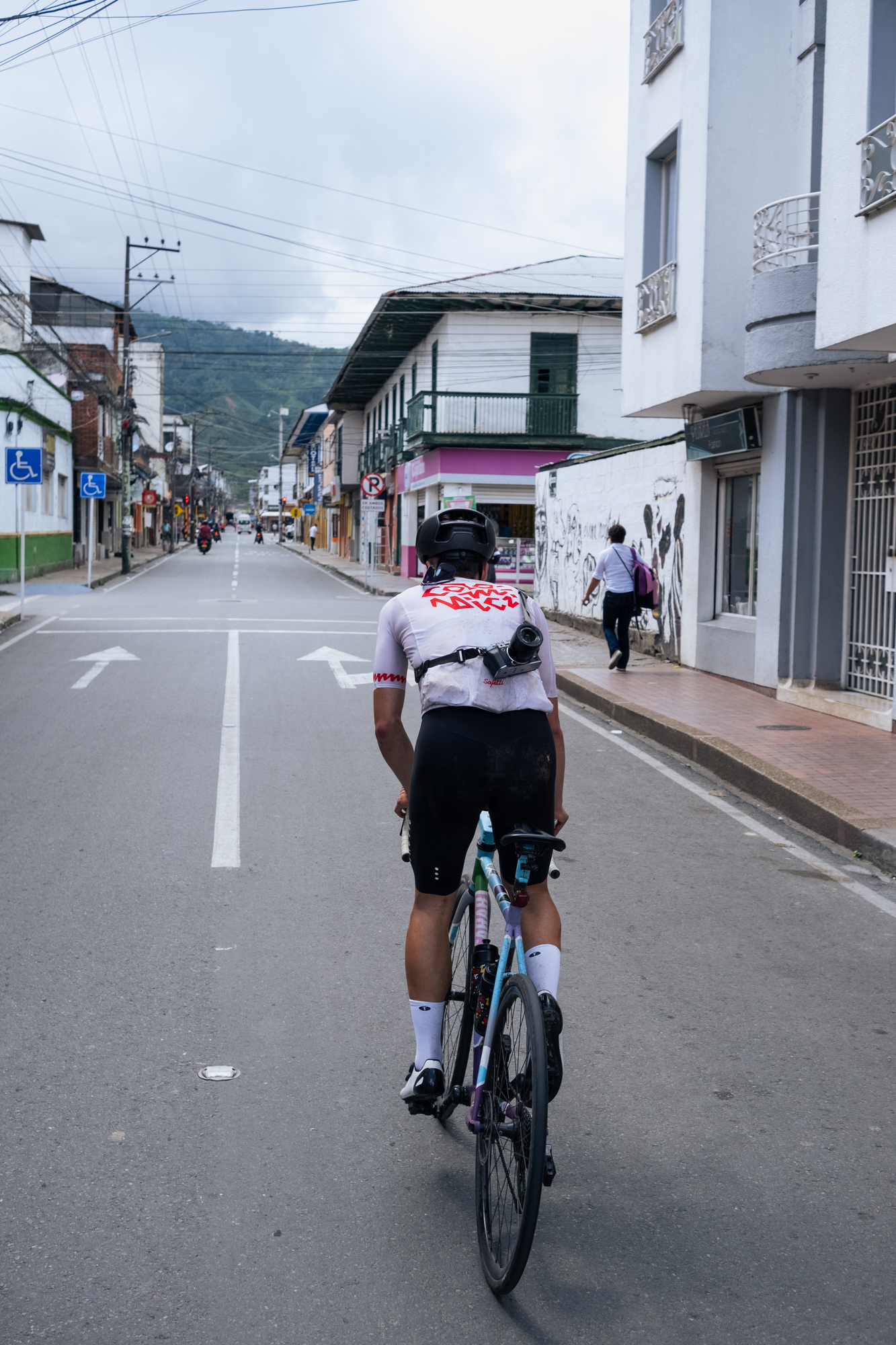 Ya habíamos realizado la mayor parte del desnivel, por lo que en el segundo tercio de la etapa disfrutamos de un largo descenso en el que cruzamos Circasia, Montenegro y Quimbayá. Es en este último pueblo iniciamos la última ascensión de nuestro tour con Colombici, justo cuando nuestras piernas nos empezaban a pedir clemencia tras la carga acumulada los anteriores días.