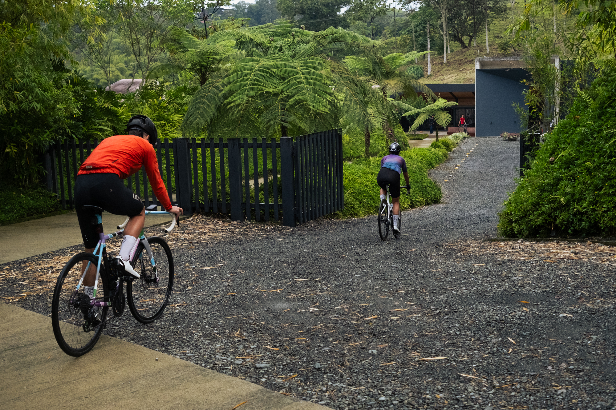 Fue una subida entretenida, con pendientes cambiantes y vistas a las plantaciones de plátanos. Sin embargo, siendo honestos, lo que más deseábamos era llegar a Casa du Veló. Los últimos 700 metros a más del 15% hicieron que llegáramos al alojamiento agotados y caninos.