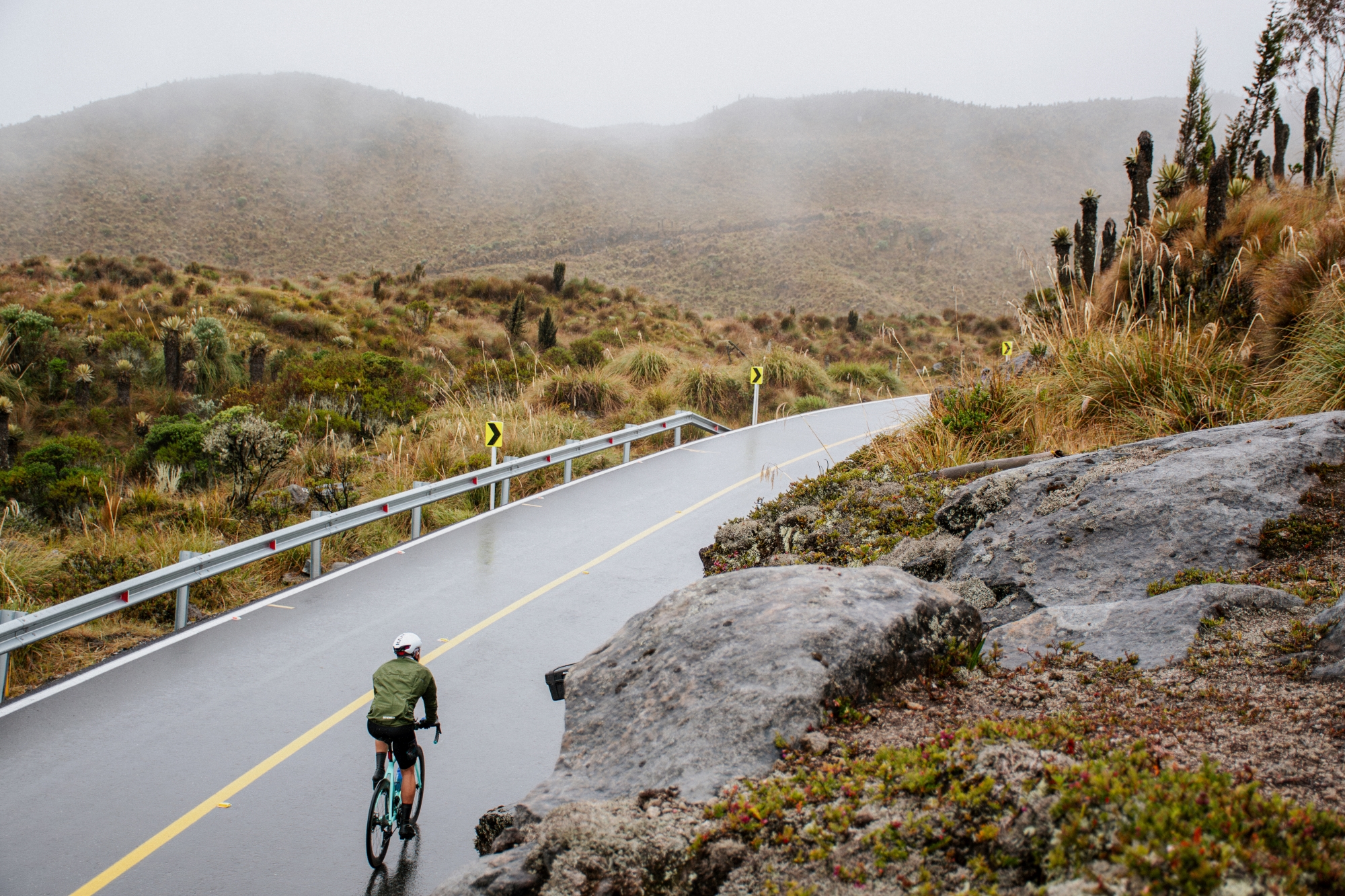 ¿Acabó ahí la tercera etapa? No, queríamos conquistar también el famoso Alto de Letras, aunque no fuera por la vertiente típica. Desde el Sifón nos adentramos en el Parque Nacional Natural Los Nevados, y después iniciamos un descenso con fuerte lluvia y frío. Agracedimos el momento en el que alcanzamos el cruce para iniciar la gentil subida hasta Letras.