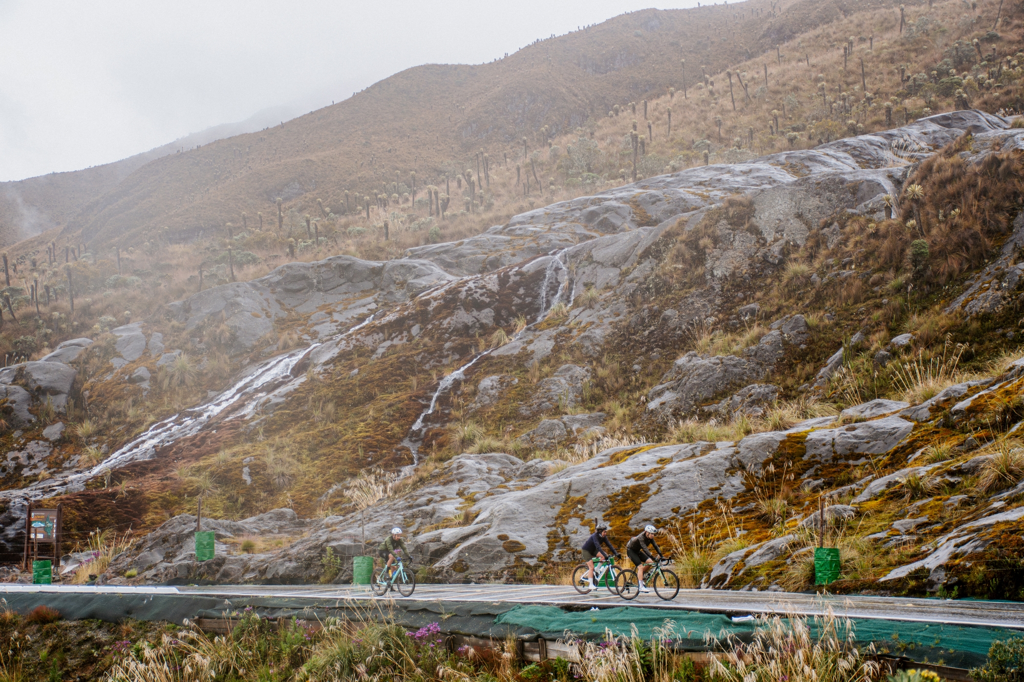 Si el ascenso al Altos del Sifón ya es de por sí un reto mayúsculo, las condiciones meteorológicas iban a acentuar su dureza. Empezó a llover la tarde anterior, y aunque justo paró cuando empezamos nuestra ruta – a las 5:30 para intentar coronar temprano -, nos mojamos intermitentemente durante todo el día.