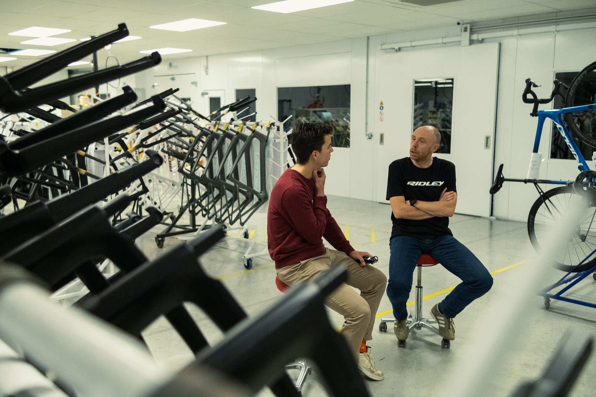 Tuvimos la oportunidad de visitar su sede y pudimos comprobar por qué confían en lograr su objectivo. El orgullo del CEO al mostrarnos su última innovación en pintura de cuadros, el entusiasmo del joven ingeniero aeronáutico al explicar cómo las próximas actualizaciones del túnel de viento lo pondrán a la vanguardia de las pruebas aerodinámicas… Ridley es una empresa familiar y todos tratan a la marca como si fuera su propio hijo.
