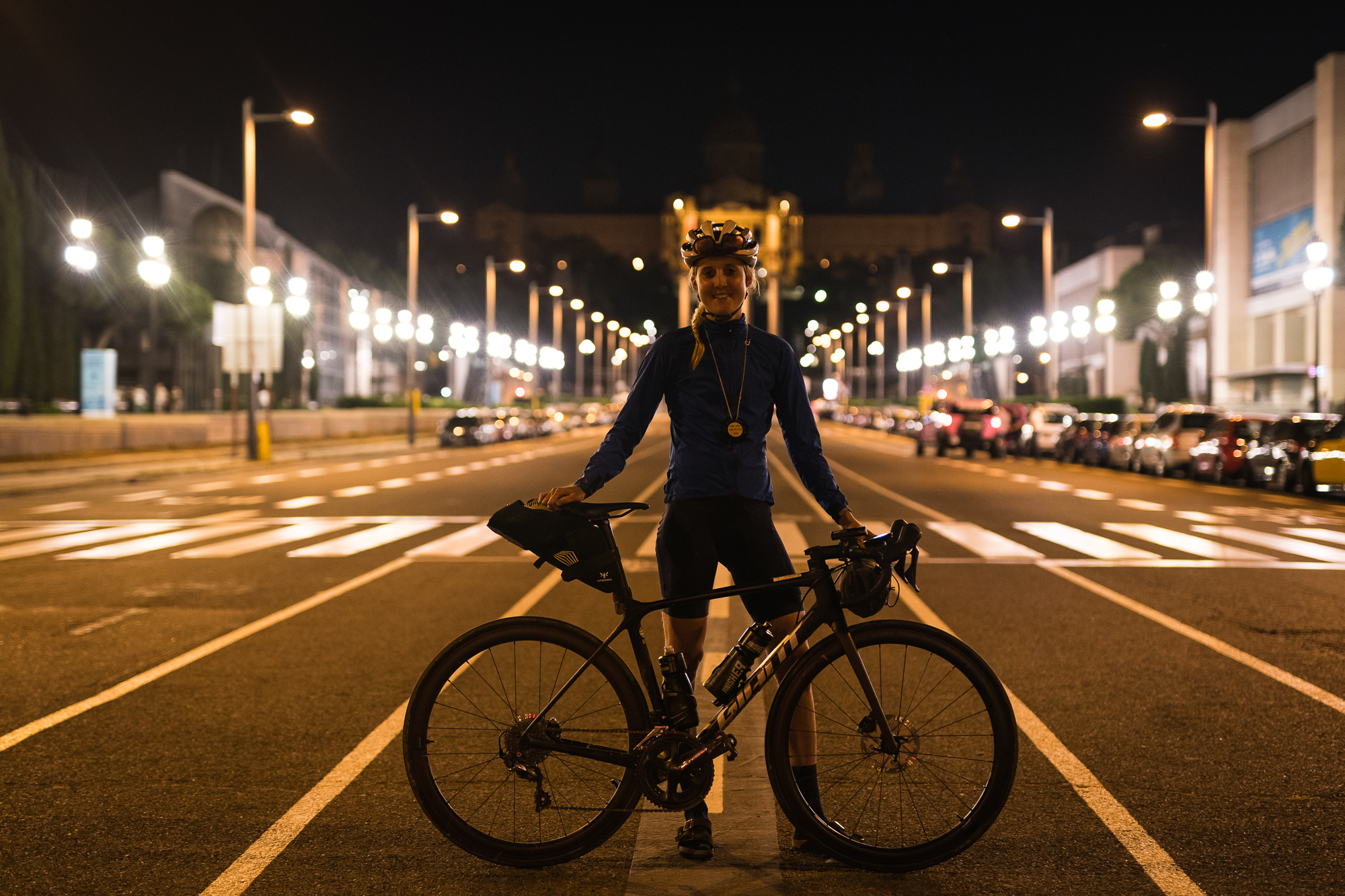 Sabía que tenía que comer y beber tanto como pudiera desde el principio, y tratar de mantener esa constancia en todo momento. También planeé dormir unas horas, pero no sabía exactamente cuánto tiempo o en qué punto de la prueba lo haría. Lo decidiría sobre la marcha. Al final, terminé sin hacer ninguna parada para dormir. Me tomé mi tiempo en cada uno de los cinco puntos de control para reabastecerme, pero no hice ninguna siesta. Sin embargo, en los últimos 200 km las cosas empezaron a complicarse y realicé demasiadas paradas. Alrededor del km 600 comencé a alucinar, pensé que iba en bicicleta con un amigo que estaba rodando los últimos 5-10 minutos en Barcelona conmigo. Pensando que estaba tan cerca de casa, no parecía necesario llenarme de agua o comida. En el km 641 comencé a enfadarme y no podía entender por qué todavía no habíamos llegado a la meta. Así que «dejé a mi amigo» y me bajé de la bicicleta para tomar un respiro. Sin darme cuenta de lo débil que estaba, sin haber comido ni bebido agua durante 40 km, me quedé dormida en un camino. Podría haber estado acostada allí durante horas, pero afortunadamente creo que solo fueron 20 minutos, más o menos. Encontré un lugar para comprar comida cerca, me llené de azúcar y volví a la ruta a por los últimos 40 km hasta Barcelona.