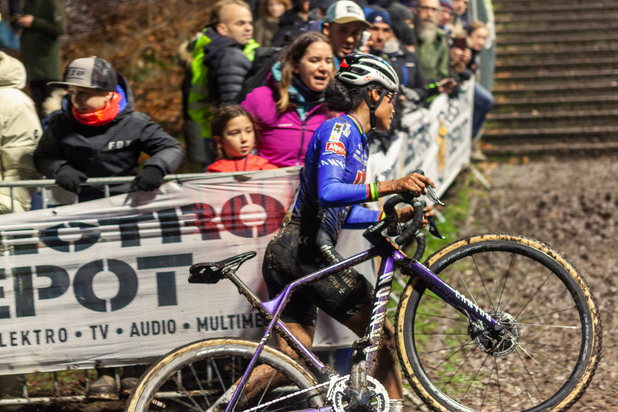El Diegem Cross no se llevó a cabo en los últimos dos años debido a la pandemia y razones financieras, pero la espera valió la pena. Sabíamos las condiciones de barro a las que se tendrían que enfrentar los ciclistas porque había estado lloviendo intermitentemente todo el día, pero no esperábamos un ambiente tan bueno, con gente de todas las edades ansiosa por ver a los mejores ciclistas de la disciplina.
