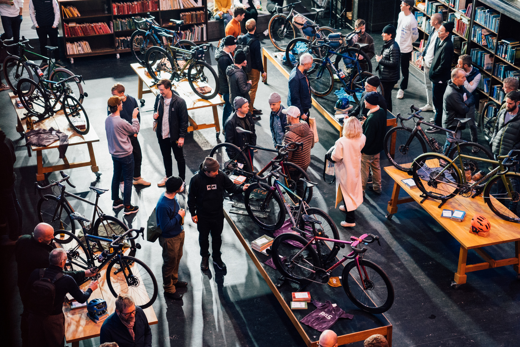 A las 5:59 pm en la oscura y fría noche del lunes 15 de noviembre, el equipo de la tienda de Oslo organizó un evento de puertas abiertas para celebrar el espíritu de la bicicleta personalizada. La ubicación no fue elegida al azar, sino que fue la Antigua Biblioteca de la capital noruega, un lugar icónico y espectacular rodeado de luces oscuras y ahora lleno de increíbles bicicletas de ensueño. Para esa ocasión especial, la biblioteca se transformó en un lugar muy acogedor y le ofreció la oportunidad de hacer algo fuera de lo ordinario en ese lugar. Te invitaba a disfrutar de una cerveza, conocer y charlar con otras personas y probar una deliciosa y picante barbacoa noruega.