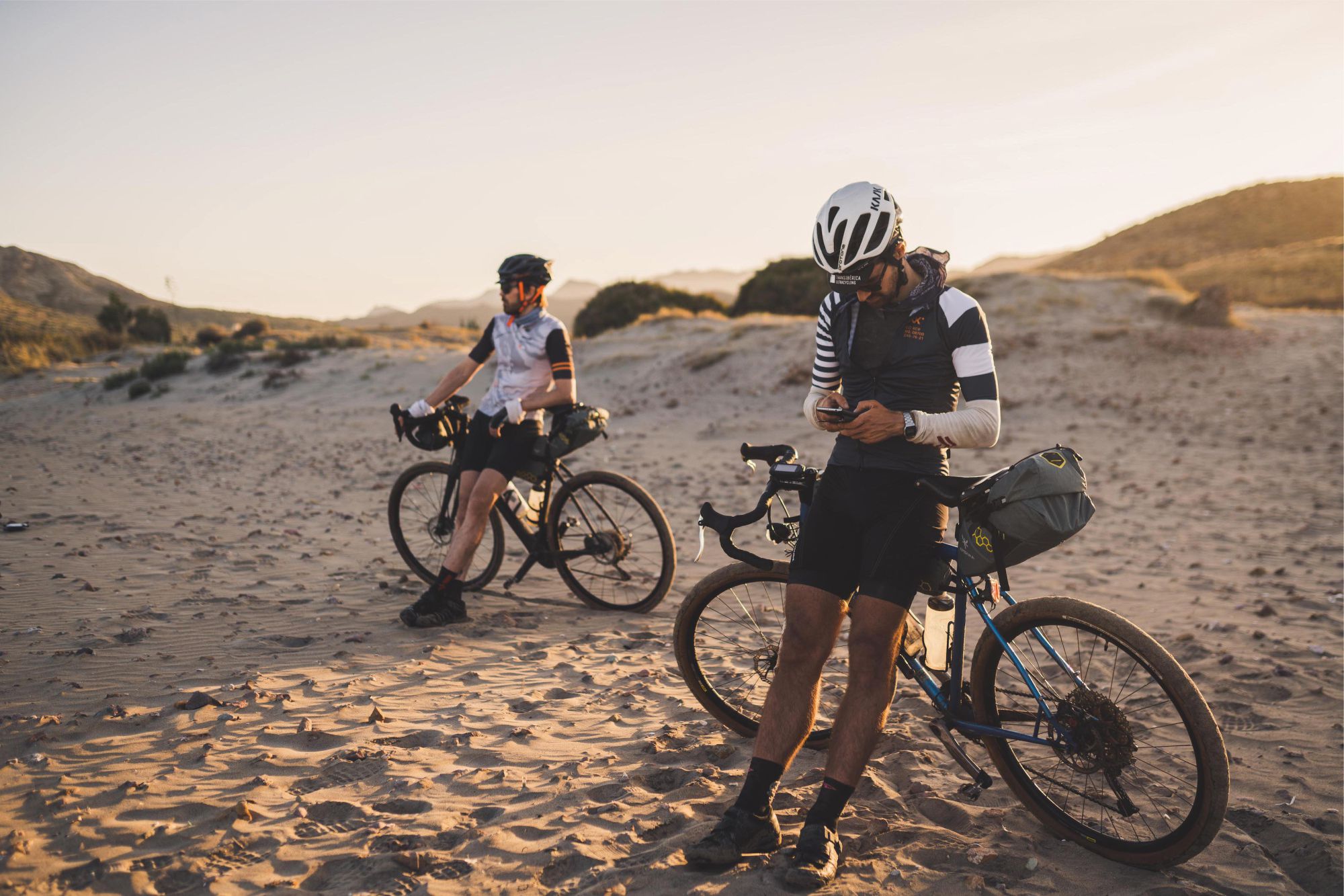 Aunque sean carreras de autosuficiencia, en las que no hay metas parciales con avituallamientos, la organización en estos eventos es fundamental. Algunas partes del trabajo son el diseño del recorrido y evento, la promoción de la carrera, el contacto vía email con los participantes, el briefing antes de la carrera o la meta de salida y llegada. Por ejemplo, este año Carlos irá por tercera vez hasta Andalucía para revisar el terreno, y también realizará el recorrido de la TransPyrenees para poder avisar de algún contratiempo antes del dia de salida. Cada evento tiene su equipo de fotografía y/o video detrás, con lo que se necesita un presupuesto. Para la Badlands, irán con todoterreno y fotógrafo, con lo que conseguirán instantáneas increíbles. Quizás con el precio de la inscripción no entreguen un maillot o un bidón, pero si un welcome-pack con la gorra, y todo el servicio de preparación y atención que hay detrás. Como medida extraordinaria, a parte del formulario de responsabilidad civil, este año se deberá avisar a la organización 14 días antes y después del evento si cualquiera de los participantes tiene algún síntoma del COVID-19, además de respetar las medidas de higiene durante la carrera.