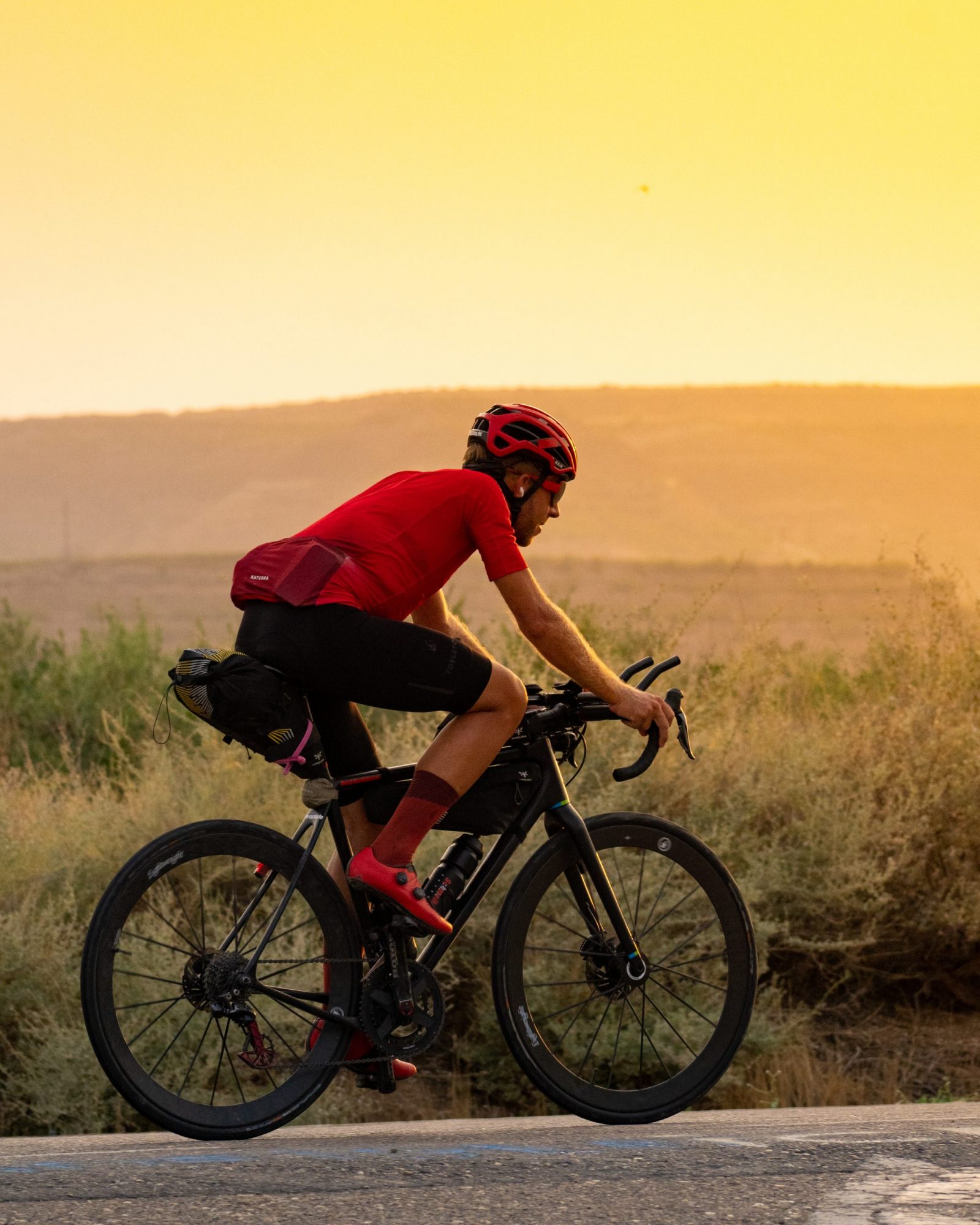 Como uno puede imaginar, las carreras de ultradistancia implican pasar la noche al aire libre y depender de lo que llevas en tu bicicleta. Unos meses antes de su debut en la disciplina compró su primer material de bikepacking, pero solo con la intención de llevar herramientas y repuestos. Comenzó a realizar aventuras de varios días, pero por aquel entonces aún dormía en hoteles, por lo que Transpyrenees fue su primera verdadera experiencia de bikepacking puro.
