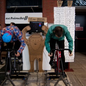 - Another very important brand of the German capital is Schindelhauer, known for the use of belt system instead of the traditional chain for their bikes. They had a full stand with a bunch of models and colors but also had the brilliant idea of riding a goldsprint where any attendee could be tested.