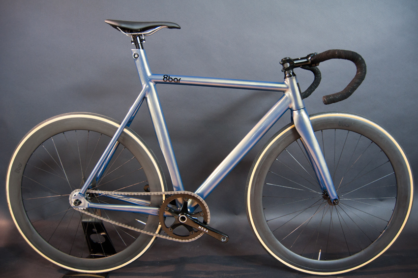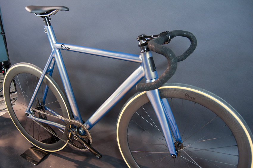 - The guys of 8bar bikes presented the new model of the known frame KRZBERG v4 in bright green pearl, only for this release. We were also surprised with a new pursuit frameset was very streamlined and very good. With the configuration that they had chosen, the bike (without pedals) weighed 6.5 kg more weight than satisfactory. As to when it will be available, they want to release it for the summer, and the approximate price will be around 600 €. They didn’t forget to show your frame to CX TFLSBERG, an economic version of KRZBERG with aluminum fork instead of carbon, and the project presented to us in 2013 in collaboration with the brand UCON, a magnificent work, in live, yet allows you to discover crafts and great results they have achieved.