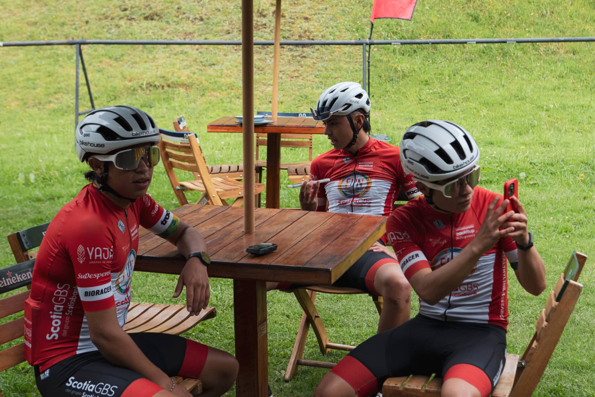 We stopped for a warm choco, waiting for the team car to arrive. The guys explained to us that the FUN works like a professional team, with defined roles in each race. Most of the teams they compete against have vague instructions and everyone races for their own success. According to Jairo, the new sports director, who is a former cyclist, has provided the team with the race tactics and aggressivity they needed.