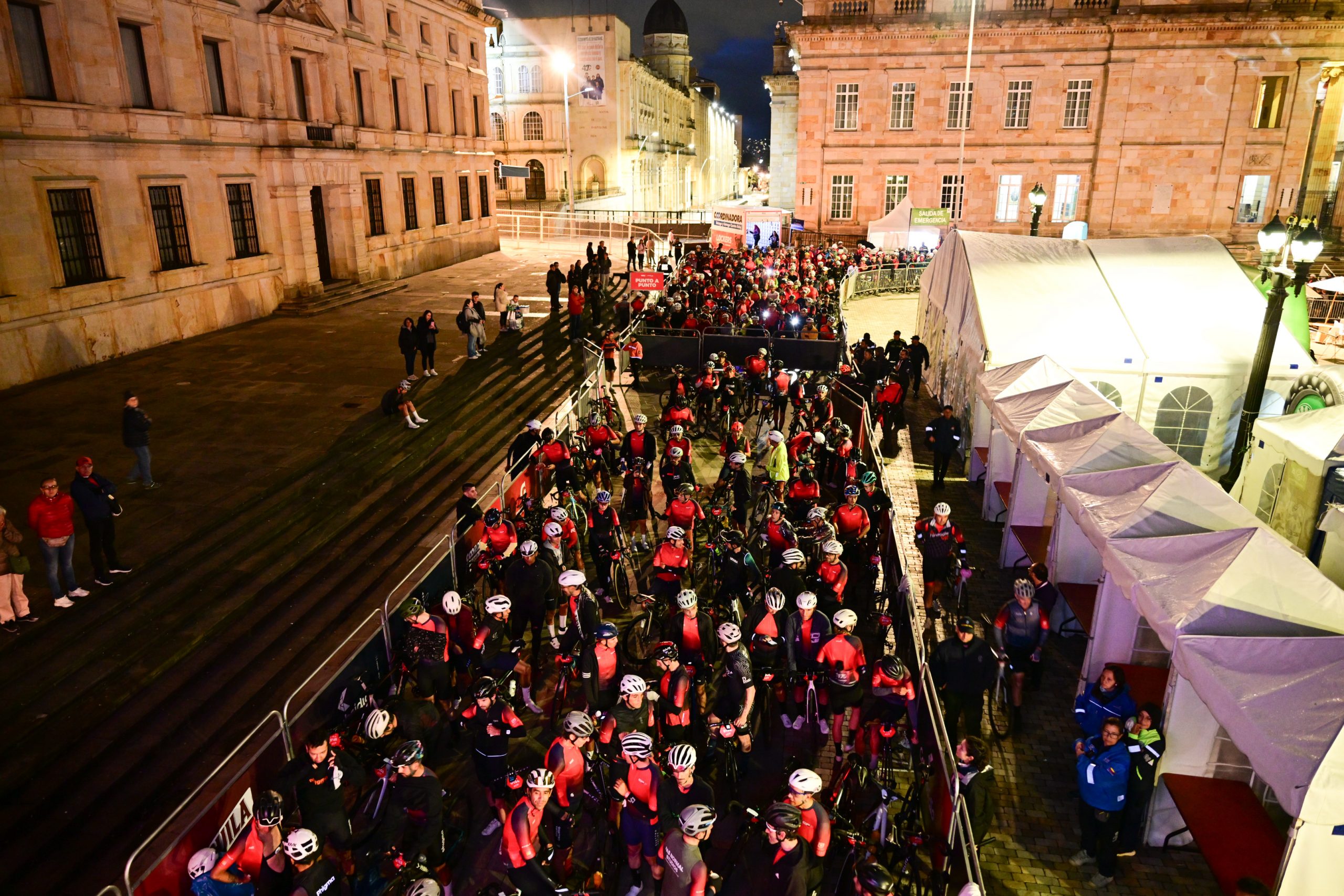 The Gran Fondo Bogotá started at 5:40 in the morning. We know that in Colombia people get up very early, but the 4 am alarm was painful. About 8 km separated the Hotel Portón where we were staying from the start line, so we had to plan how to get there on time and avoid the most dangerous neighborhoods of the city. Luckily, the organization itself established safe routes so that the participants could access Plaza Bolívar escorted by the police.